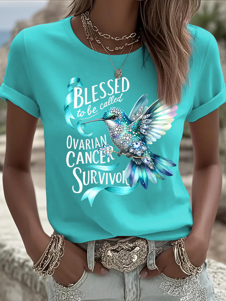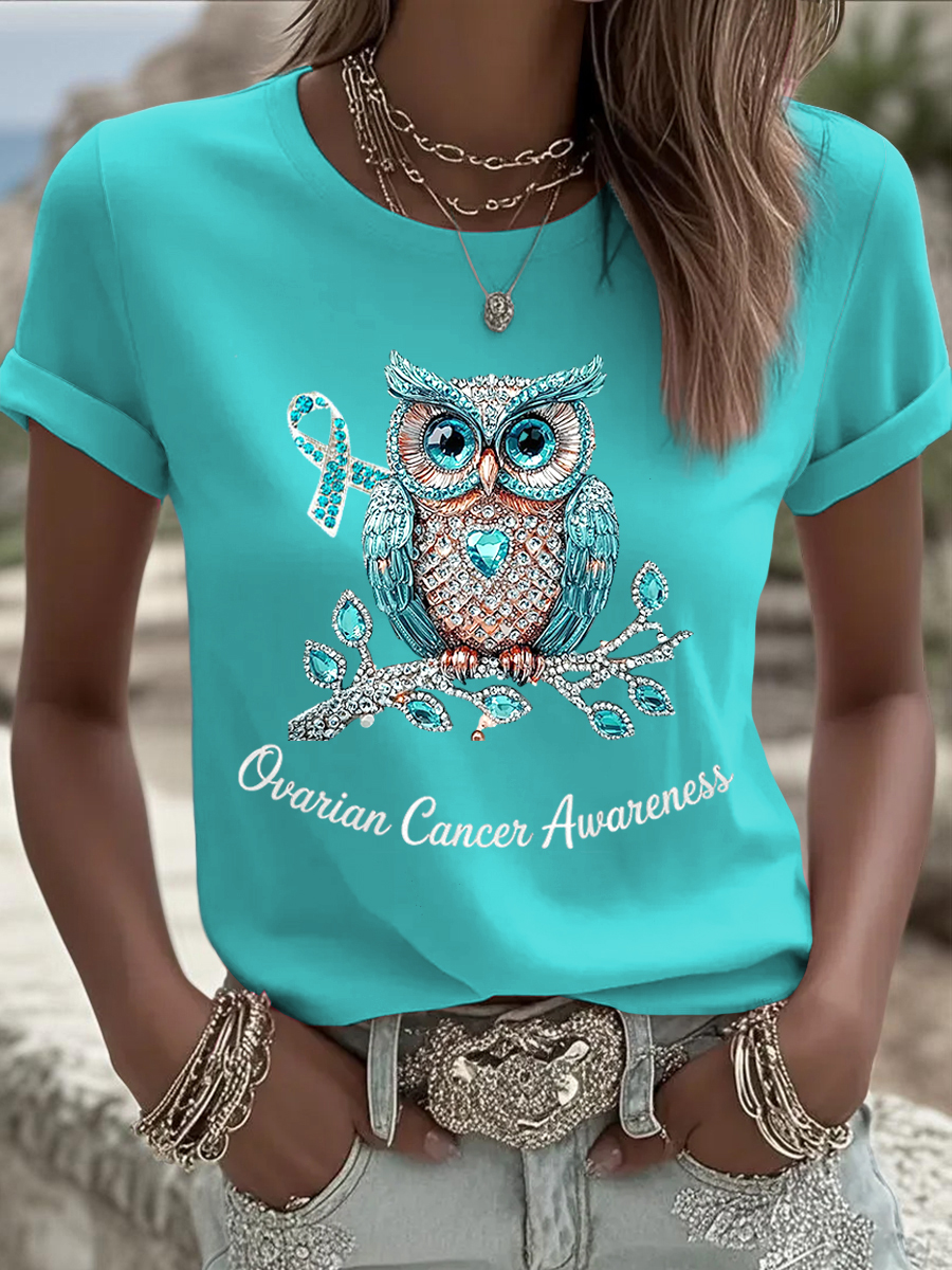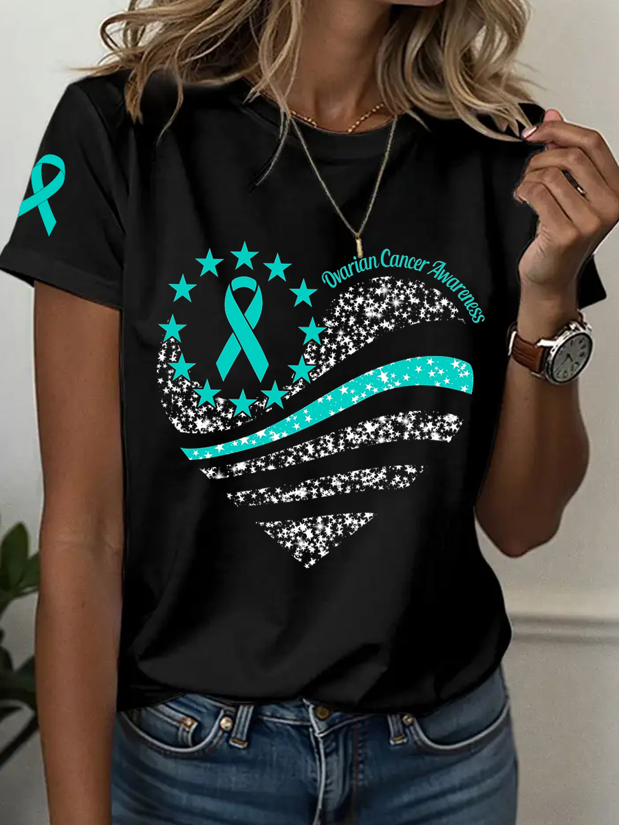 Women's Ovarian Cancer Awareness Rhinestone Casual T-Shirt