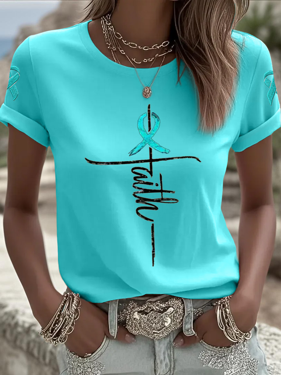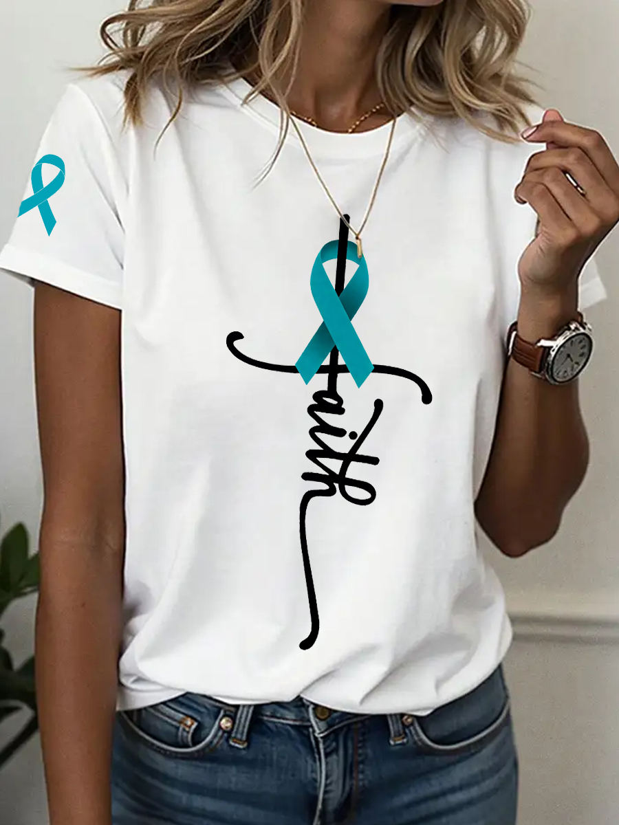 Women's Ovarian Cancer Awareness Faith Print T-Shirt