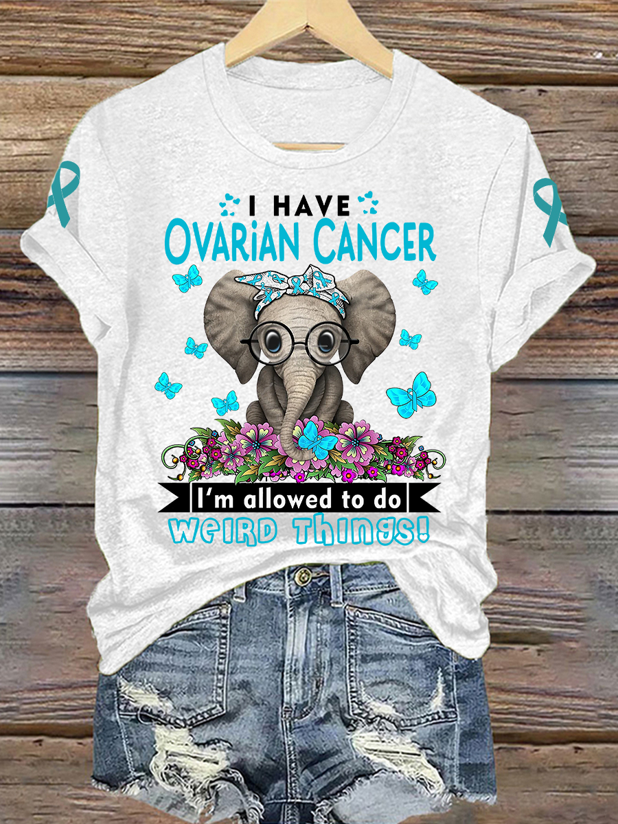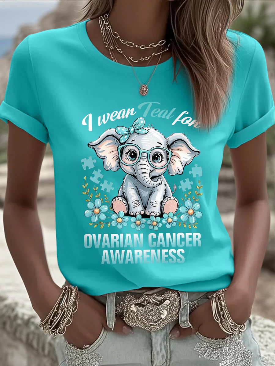 Women's I Wear Teal For Ovarian Cancer Awareness Elephant Print Tee