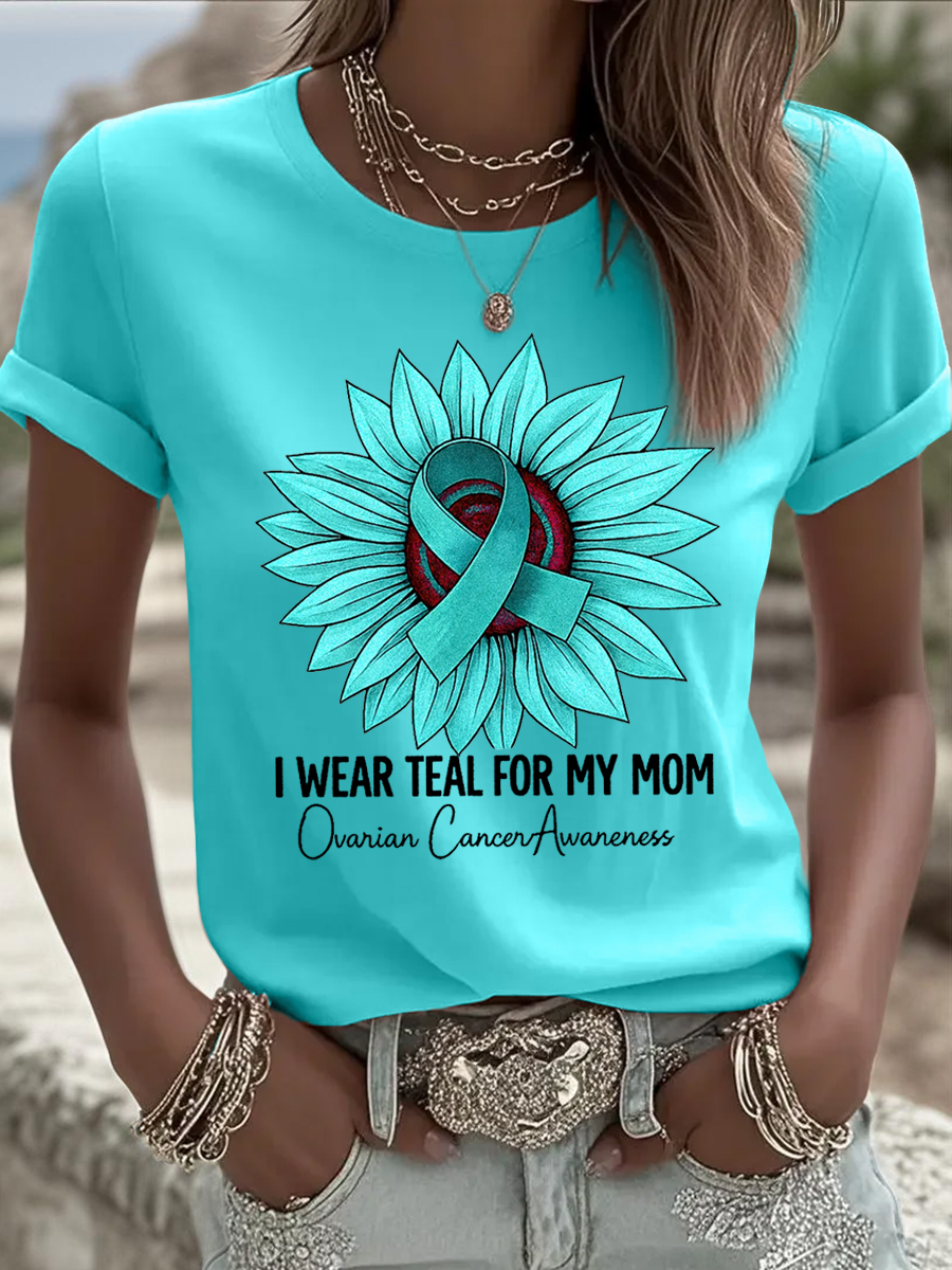 Women's Teal Sunflower I Wear Teal For My Mom Ovarian Cancer Awareness Tee