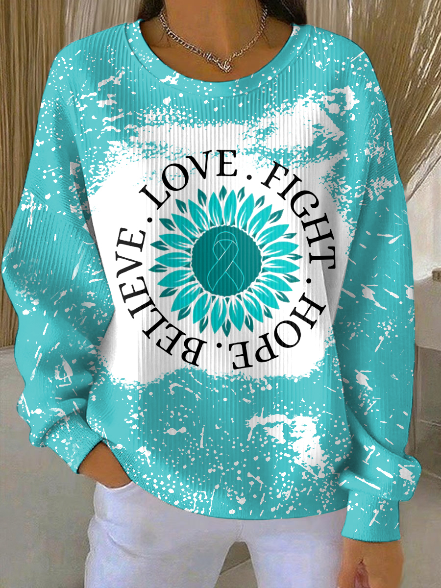 Women's Teal Sunflower Love Fight Hope Believe Ovarian Cancer Awareness Sweatshirt