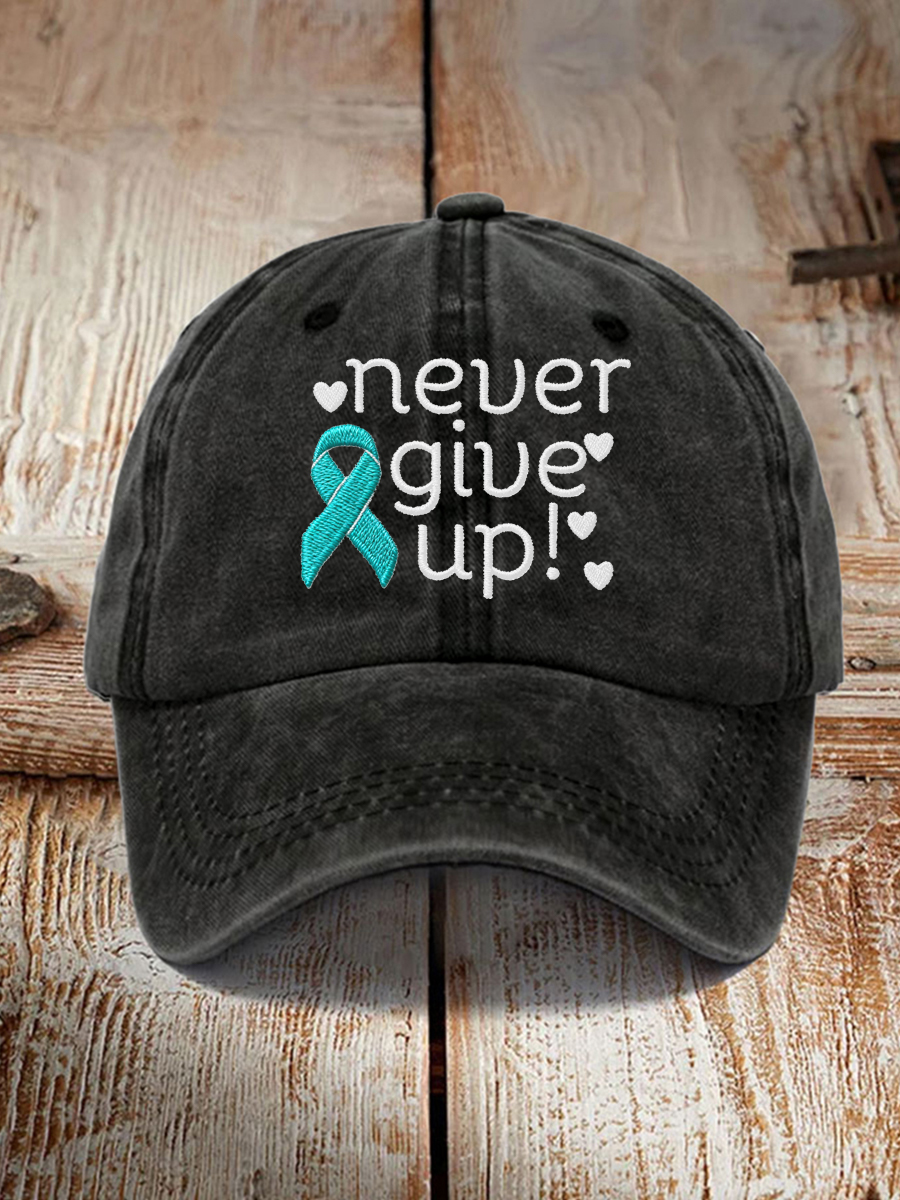 Unisex Never Give Up! Teal Ribbon Ovarian Cancer Awareness Hat