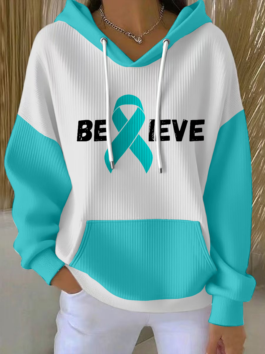 Women's Teal Ribbon Believe Ovarian Cancer Awareness Hoodie