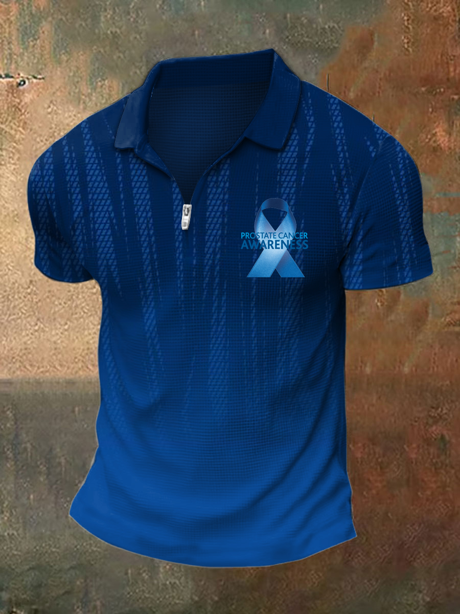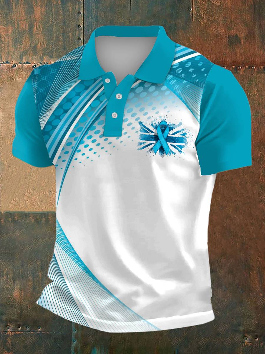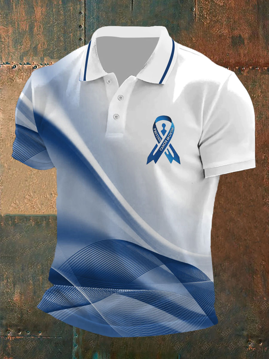 Men's Prostate Cancer Print Polo Collar Casual Short Sleeved Shirt