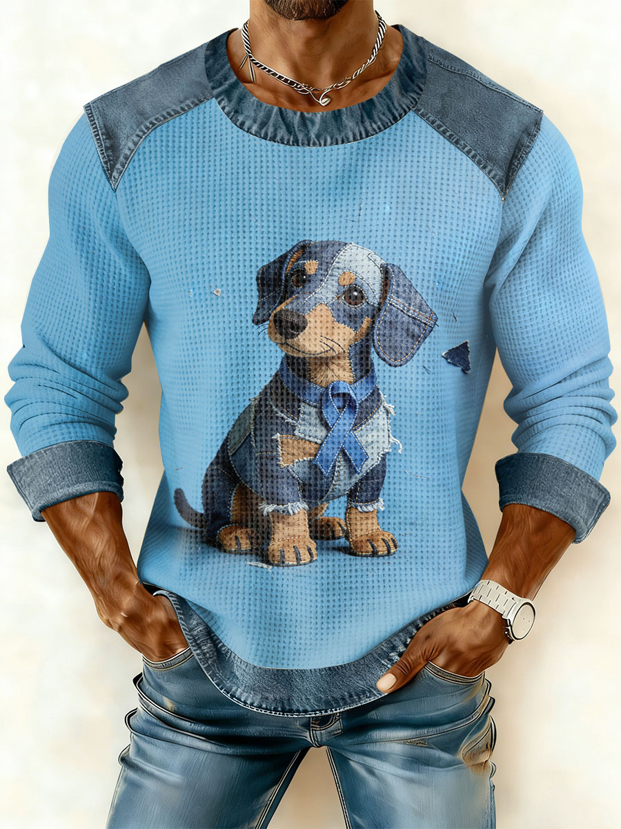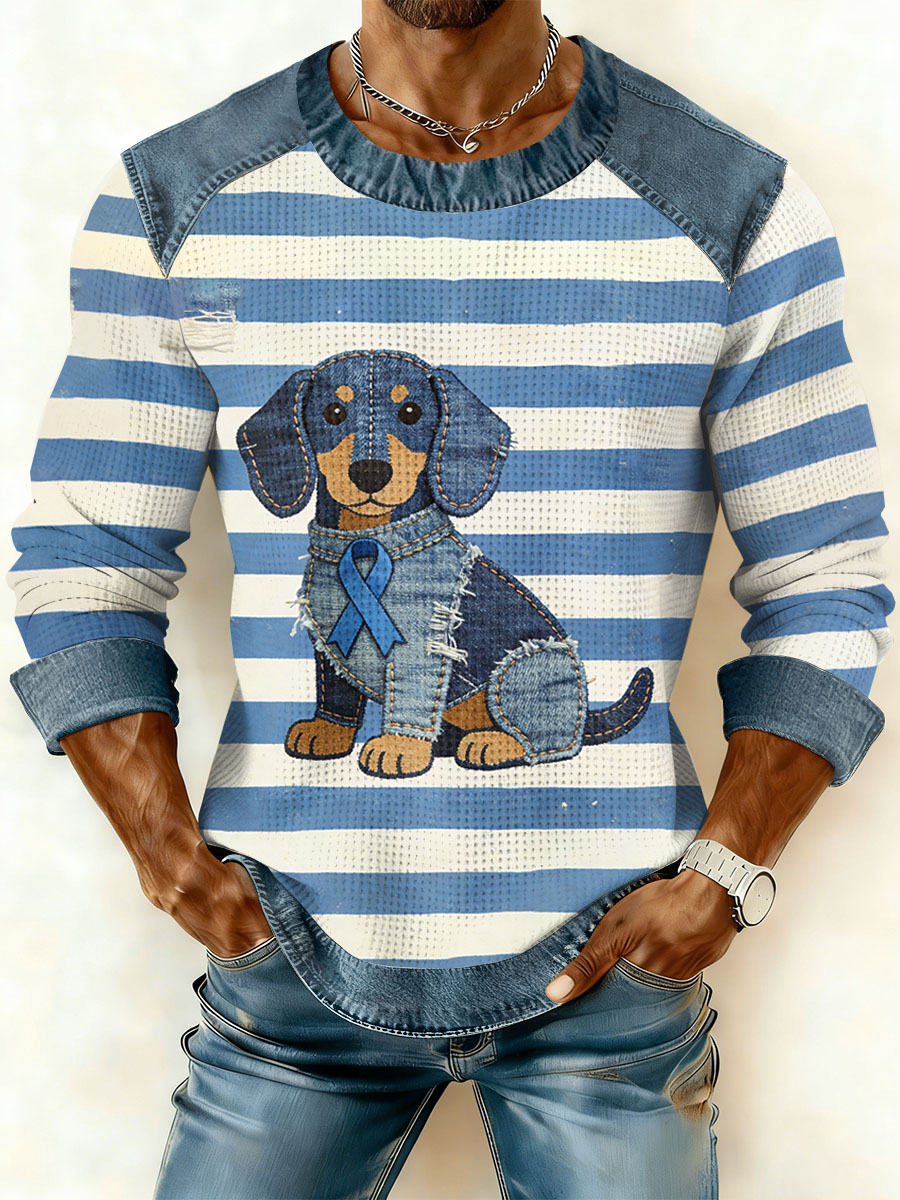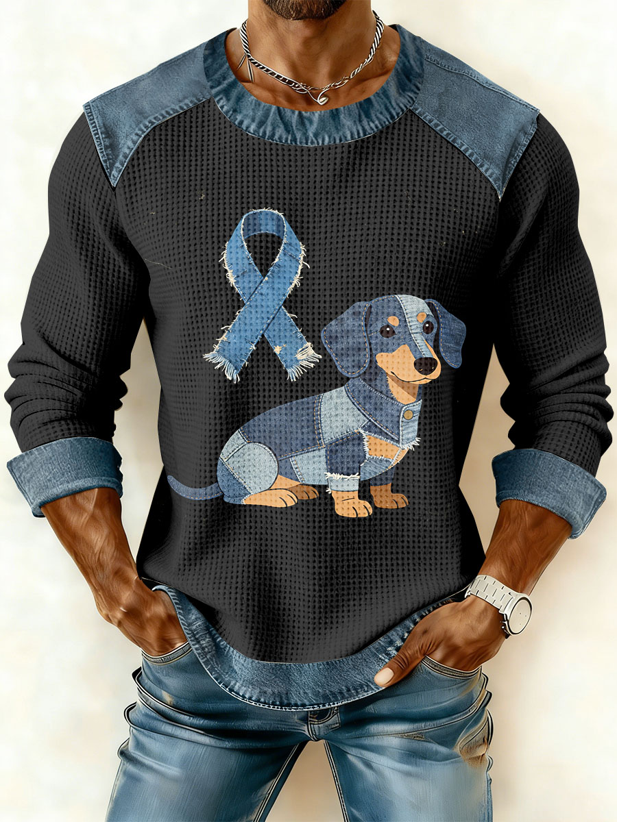 Men's Prostate Cancer Awareness Waffle Print Casual T-Shirt