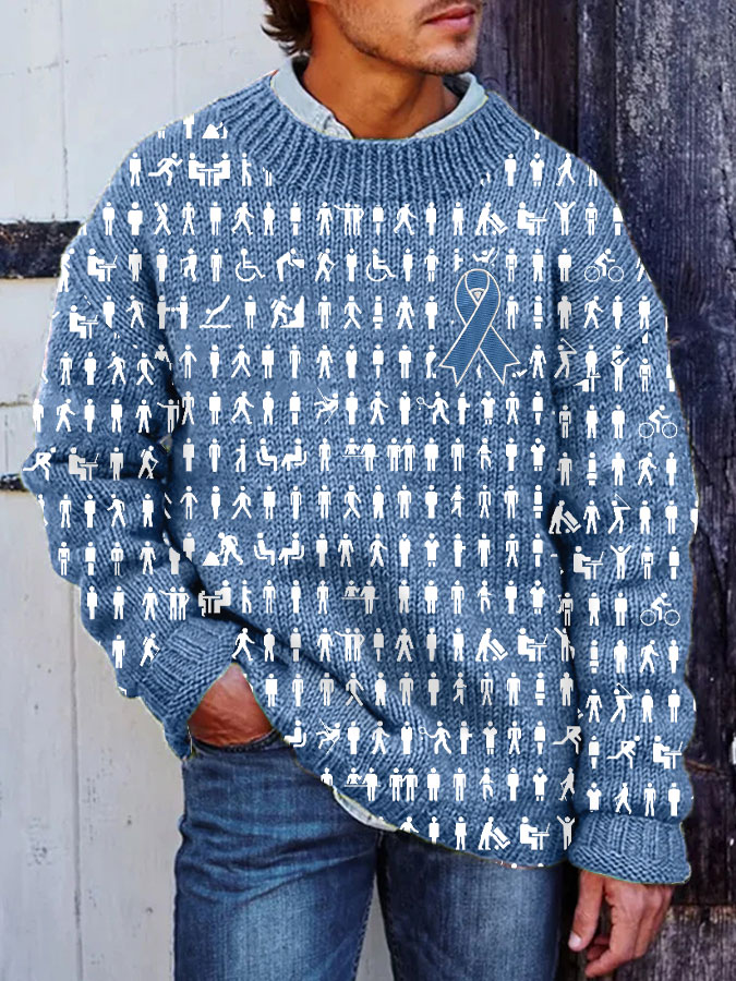 Men's Prostate Cancer Printed Long Sleeved Round Neck T-shirt