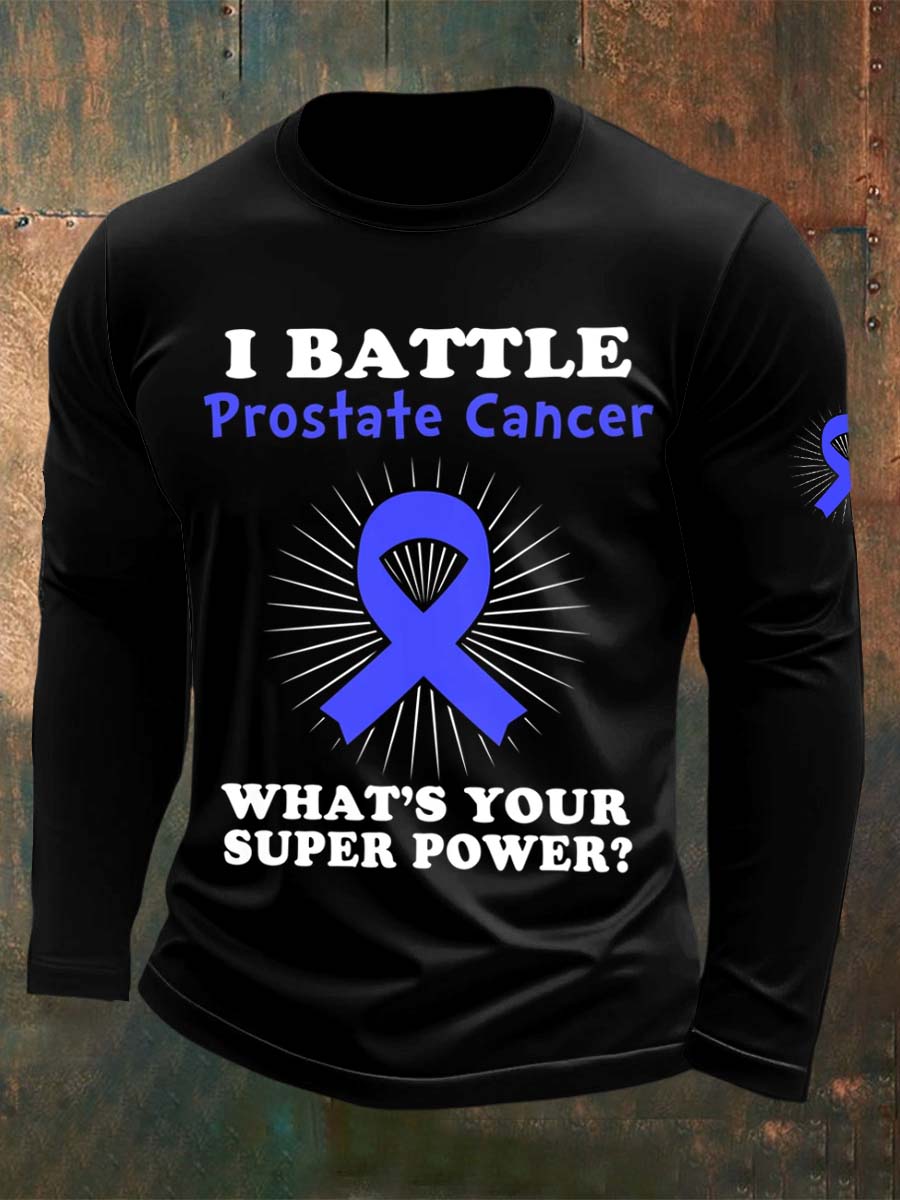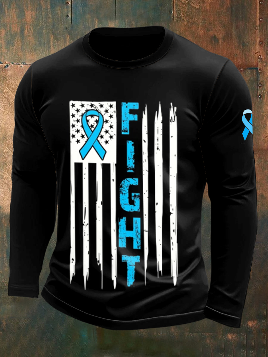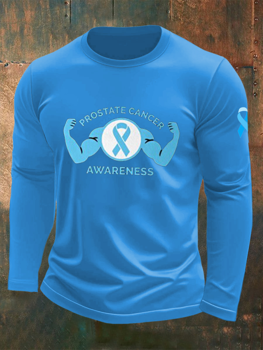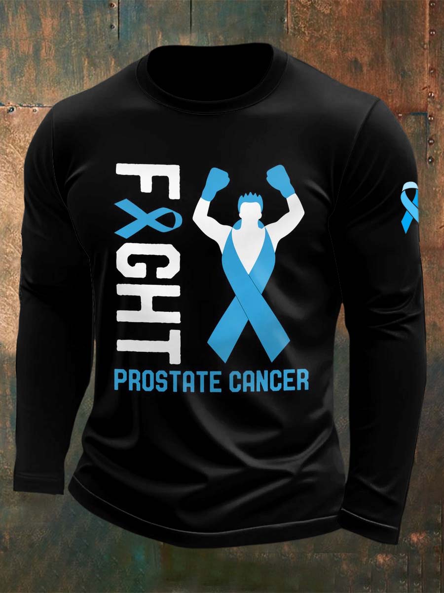 Men's Fight Against Prostate Cancer Printed Crew Neck Casual Long T-shirt