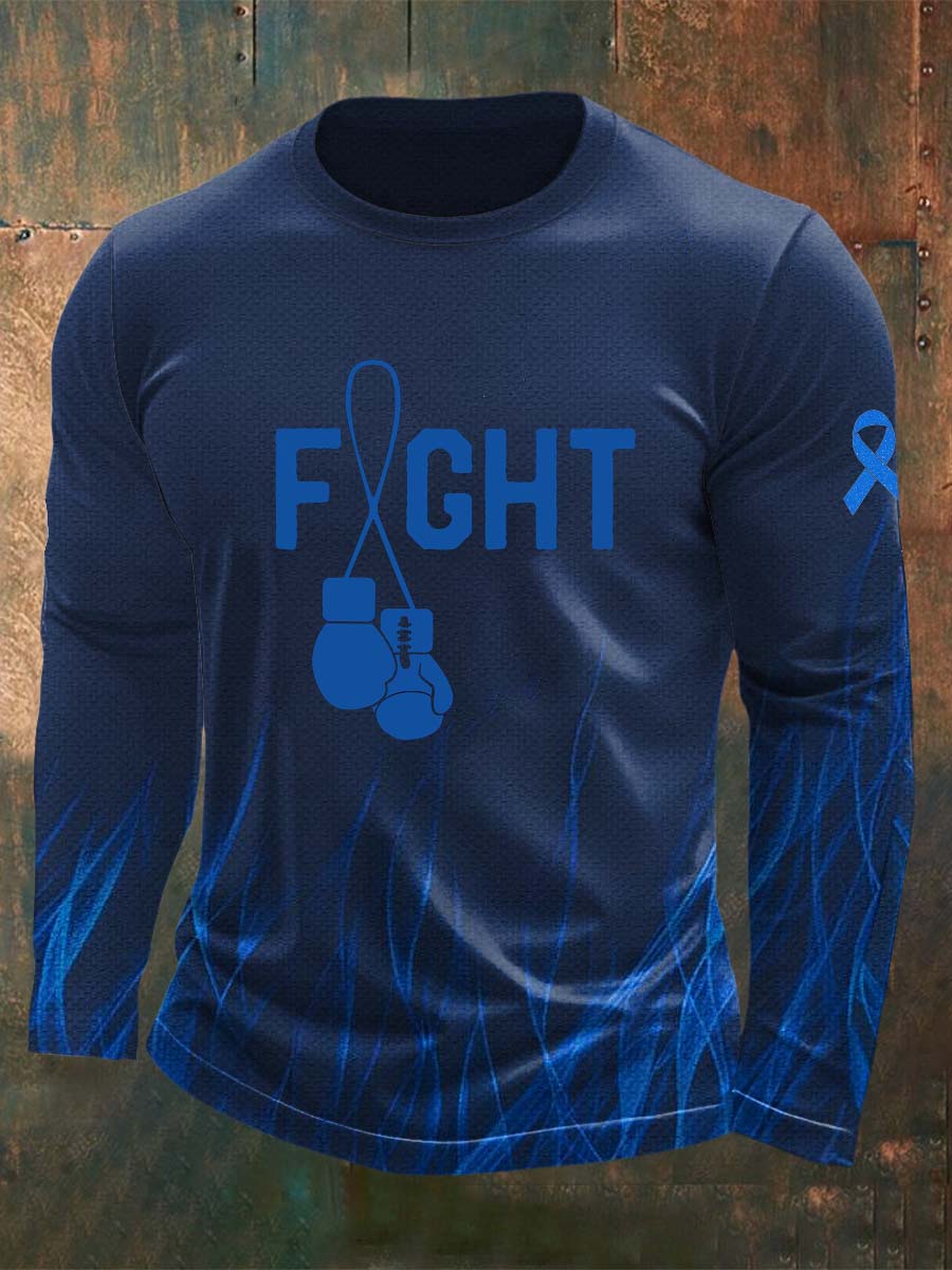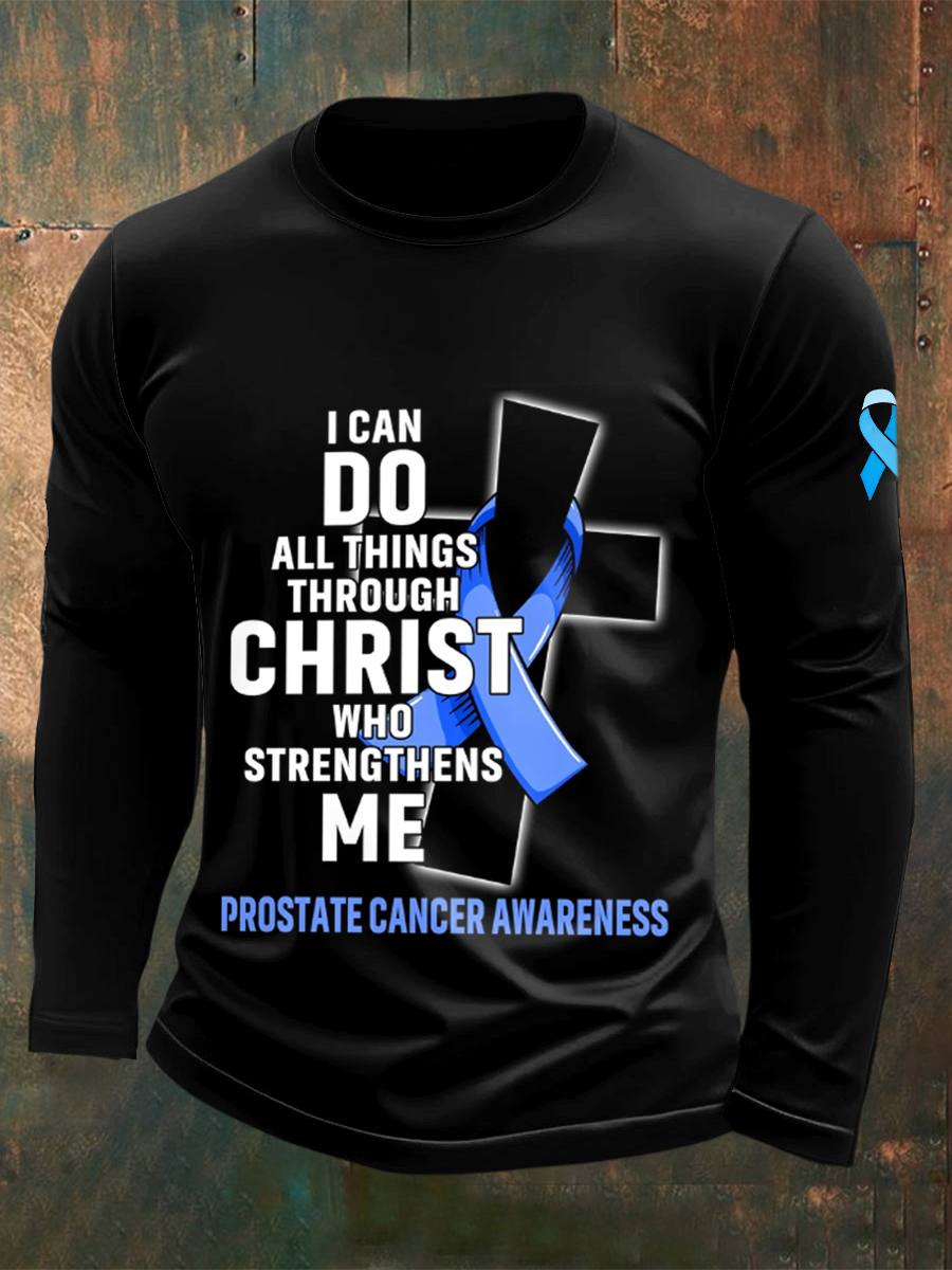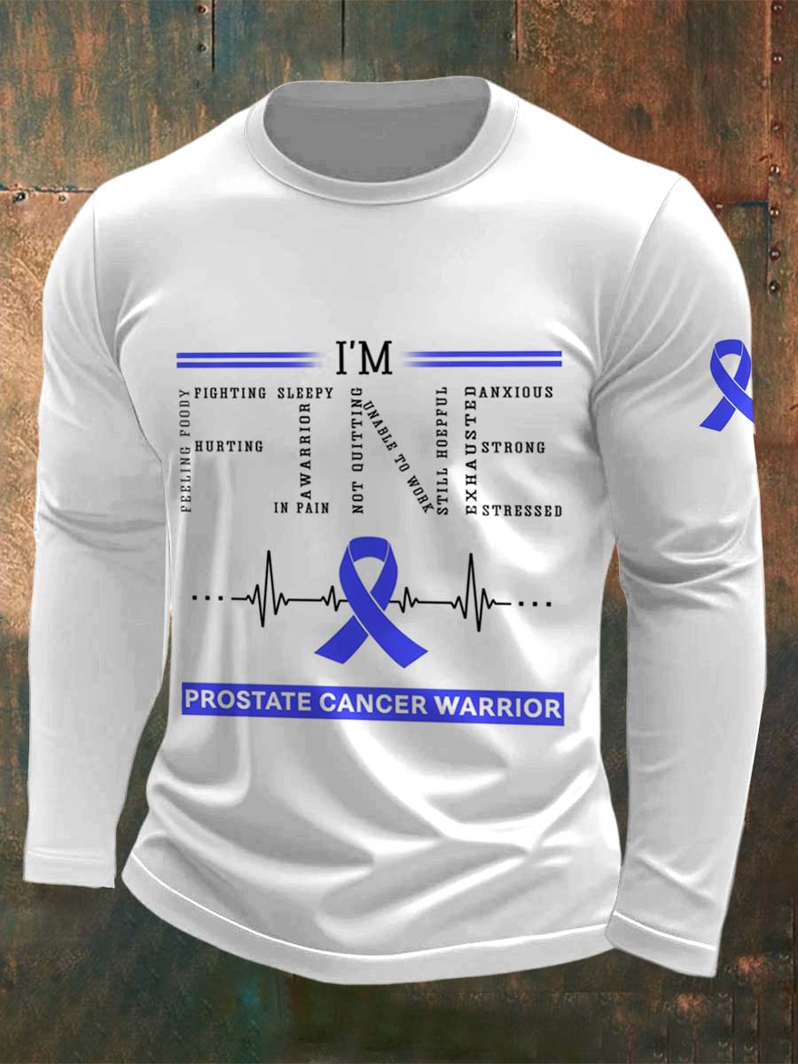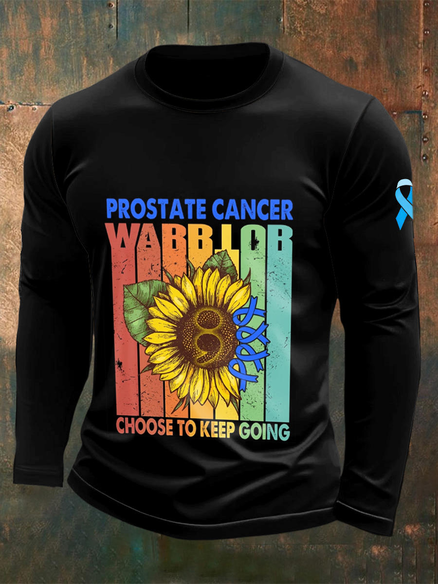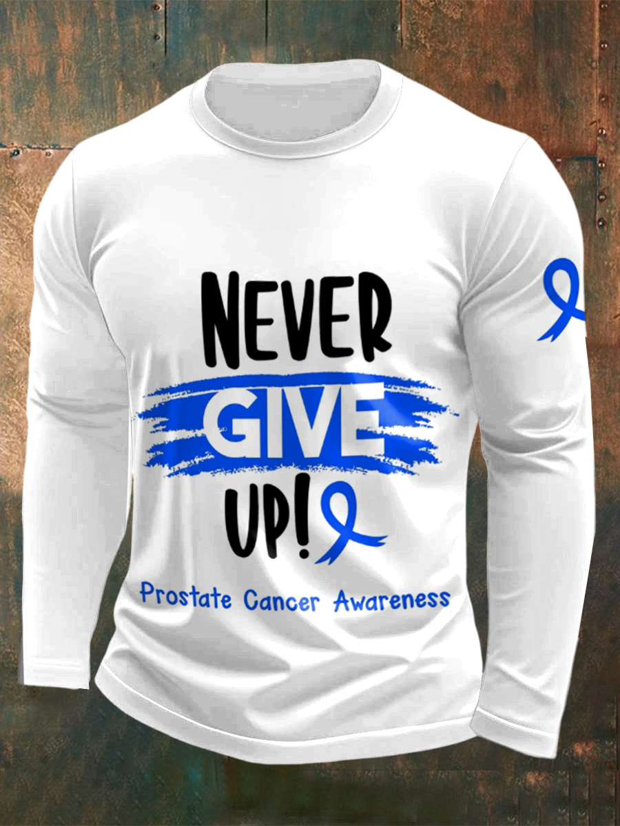 Men's Fight Against Prostate Cancer Printed Crew Neck Casual Long T-shirt