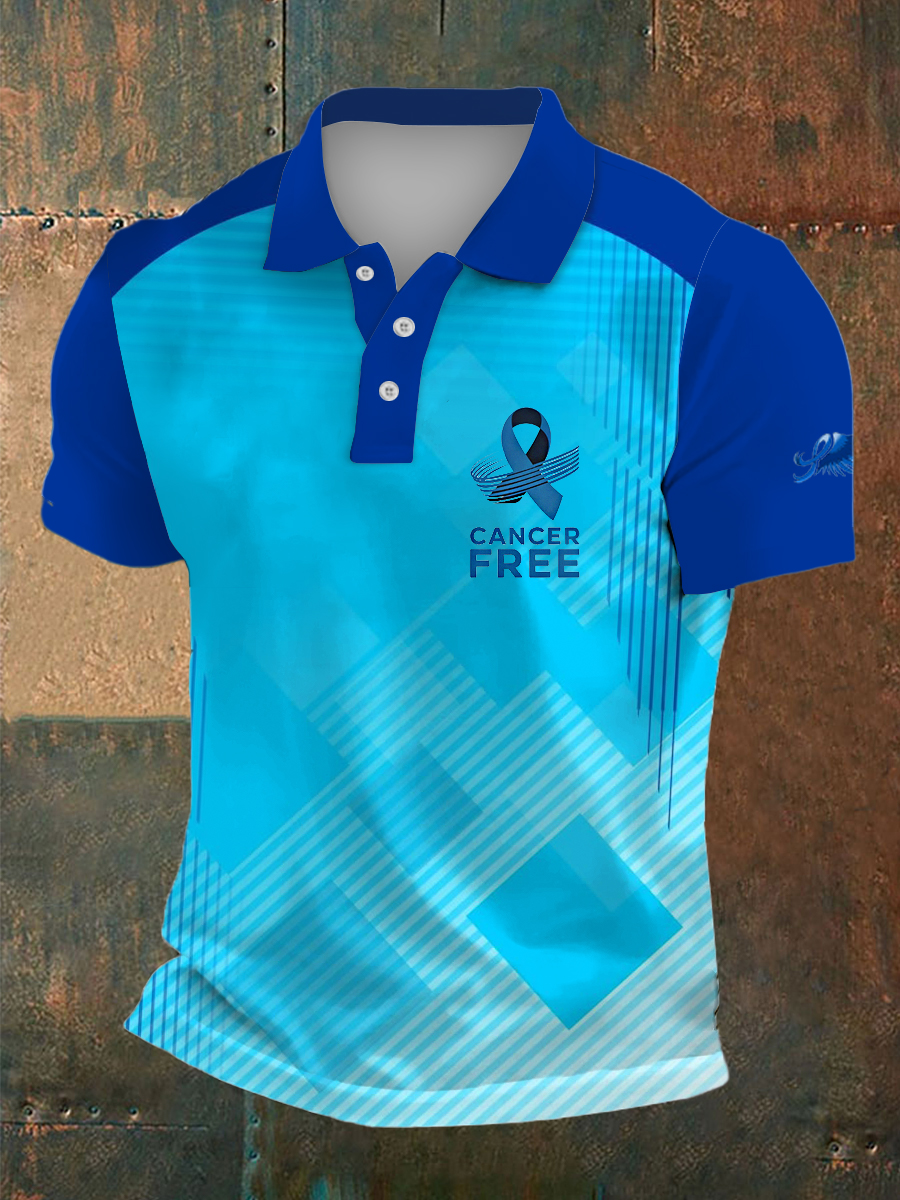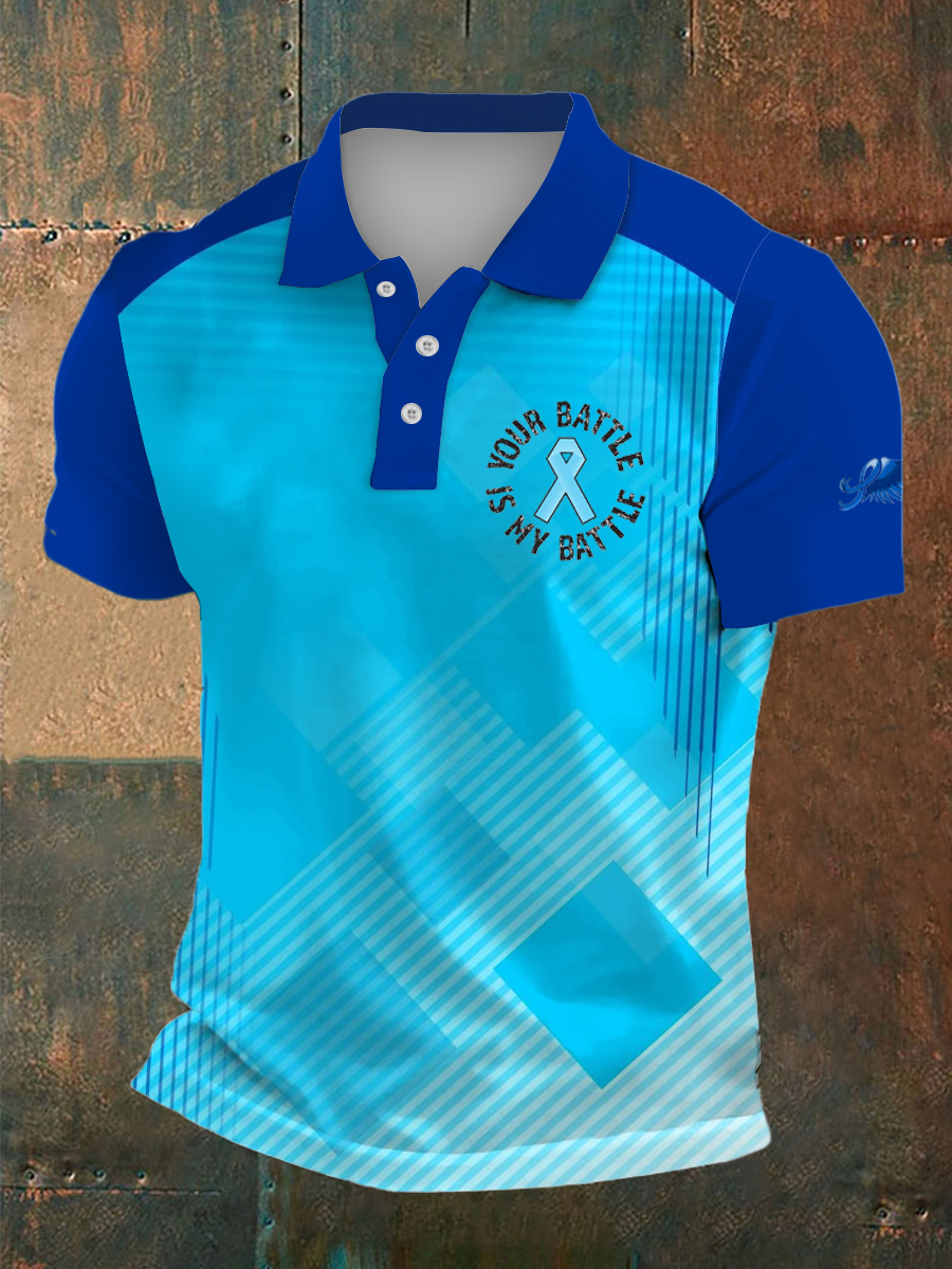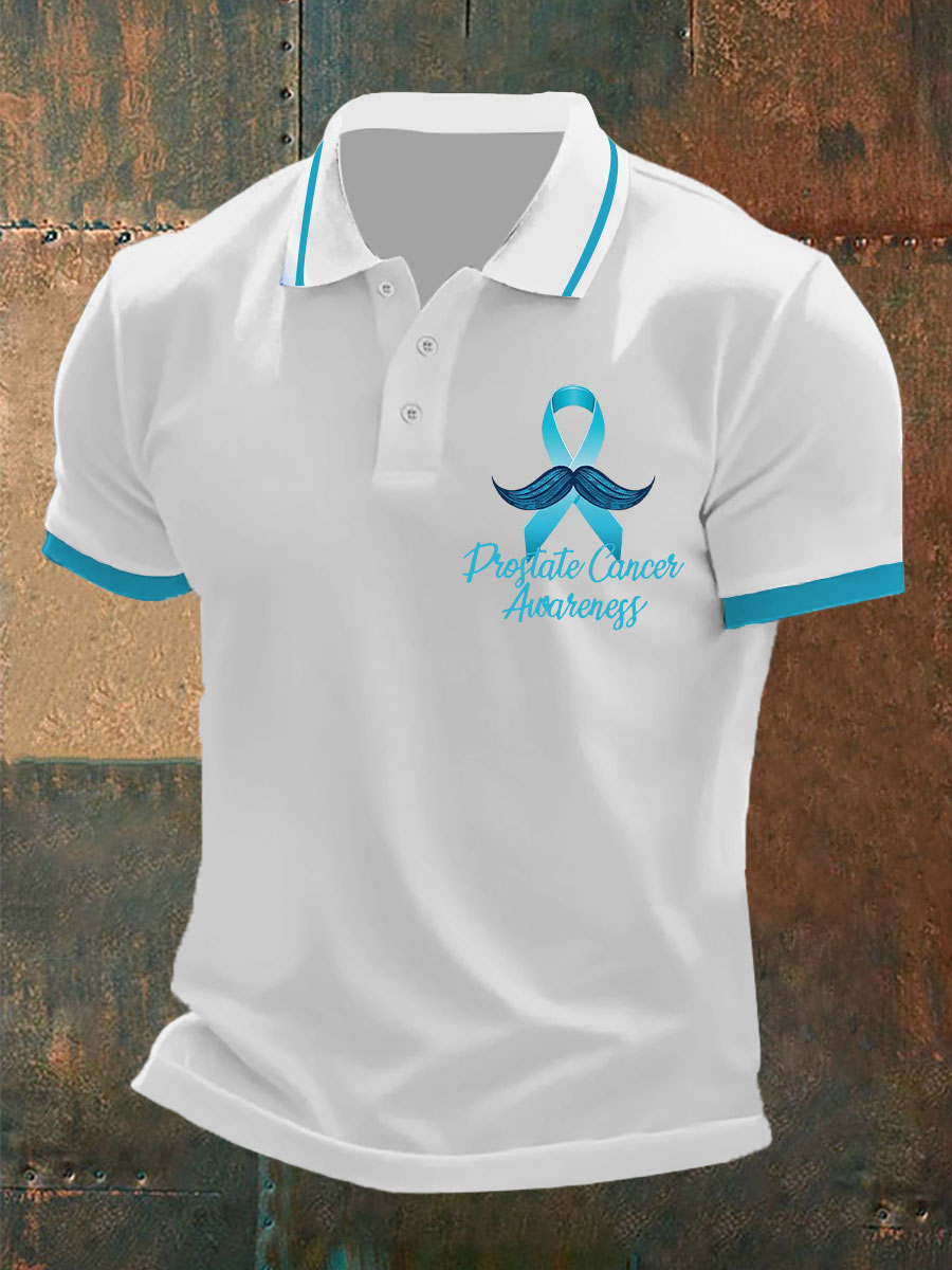 Men's Prostate Cancer Print Polo Collar Casual Short Sleeved Shirt