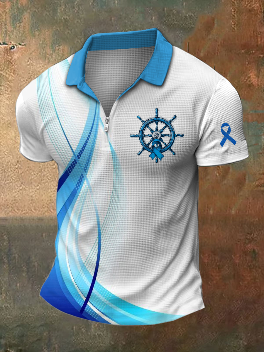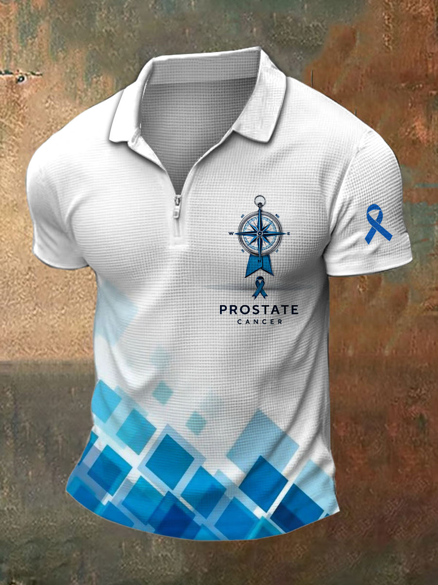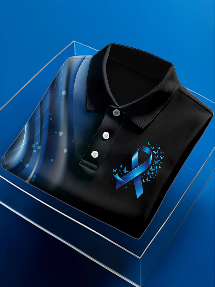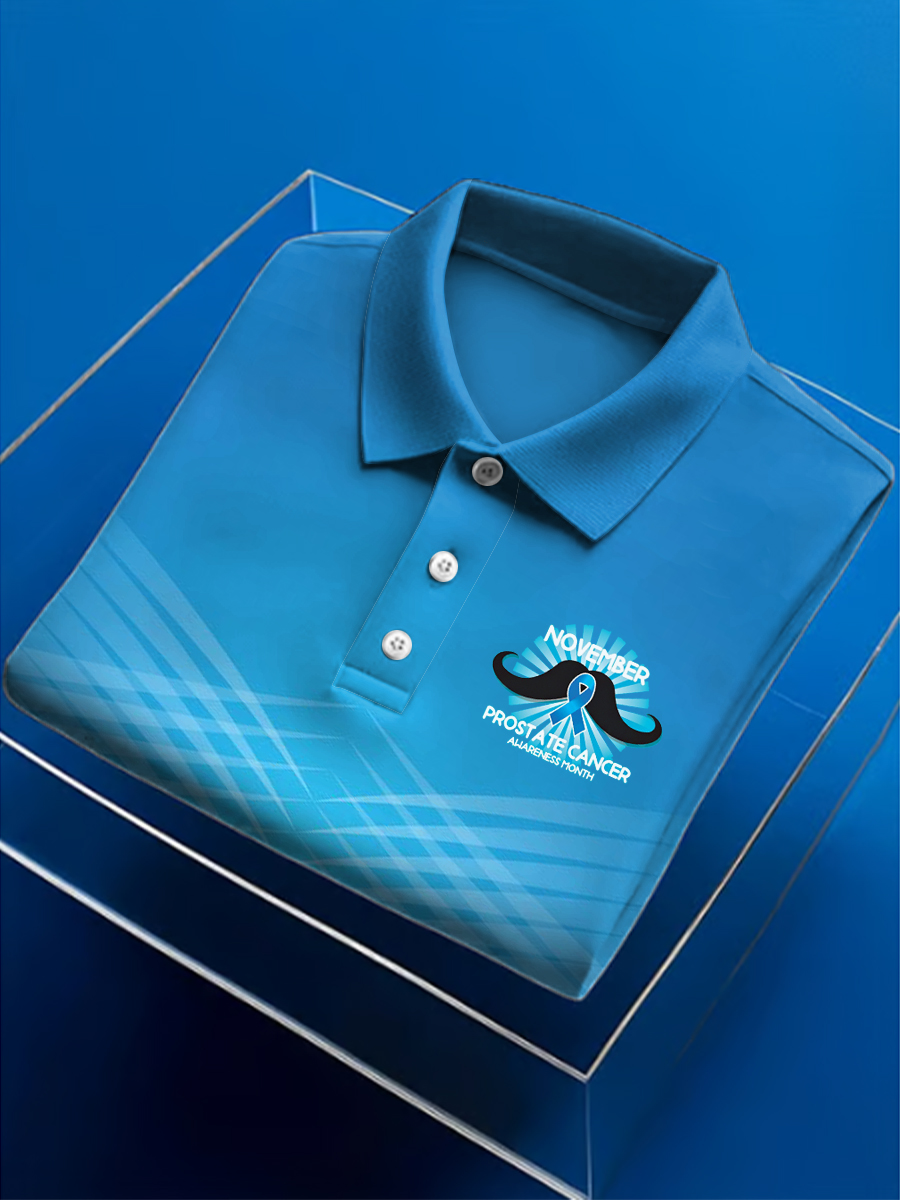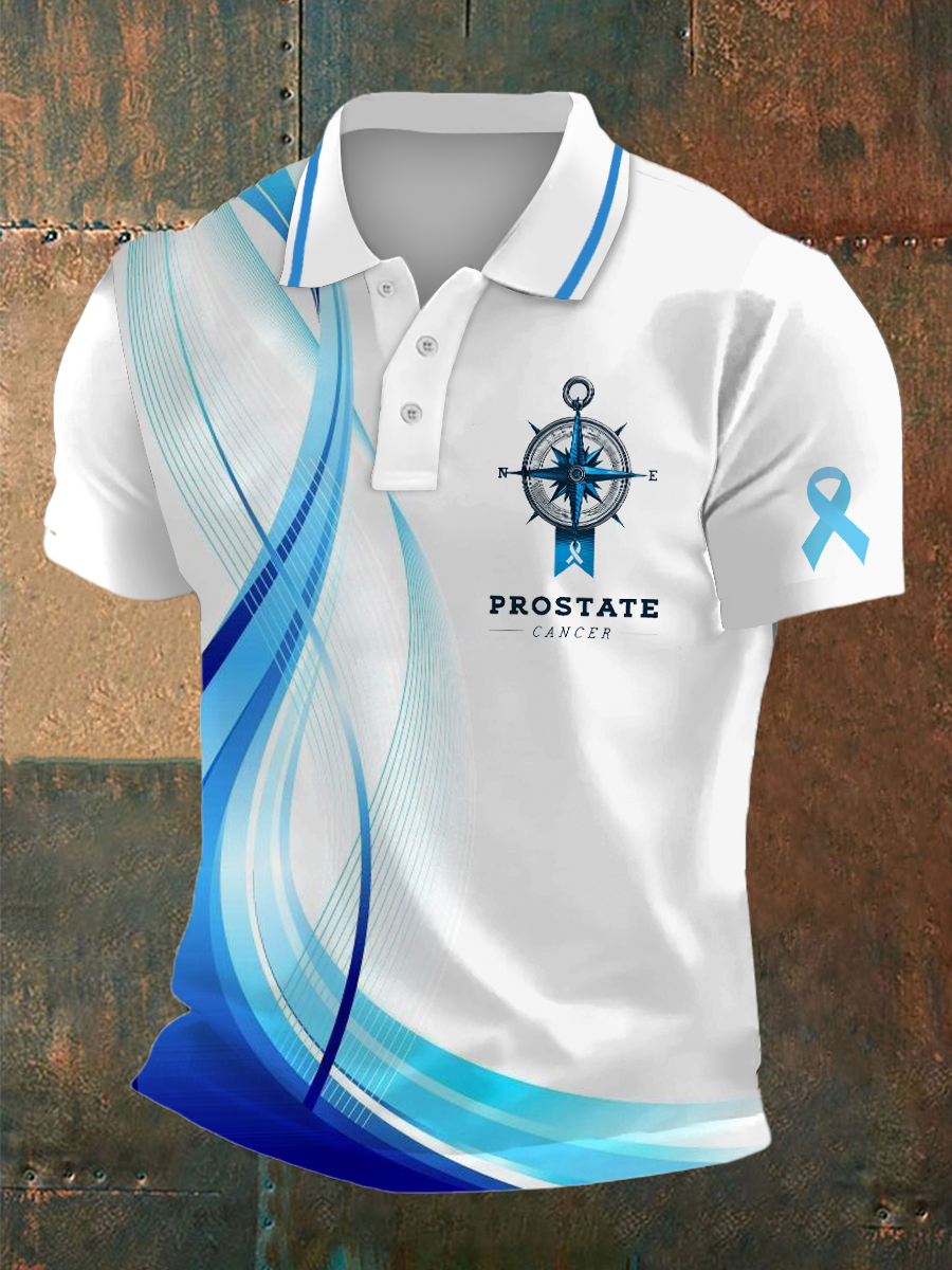 Men's Prostate Cancer Print Polo Collar Casual Short Sleeved Shirt