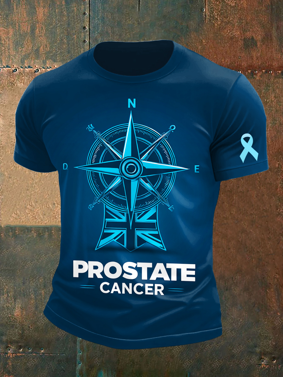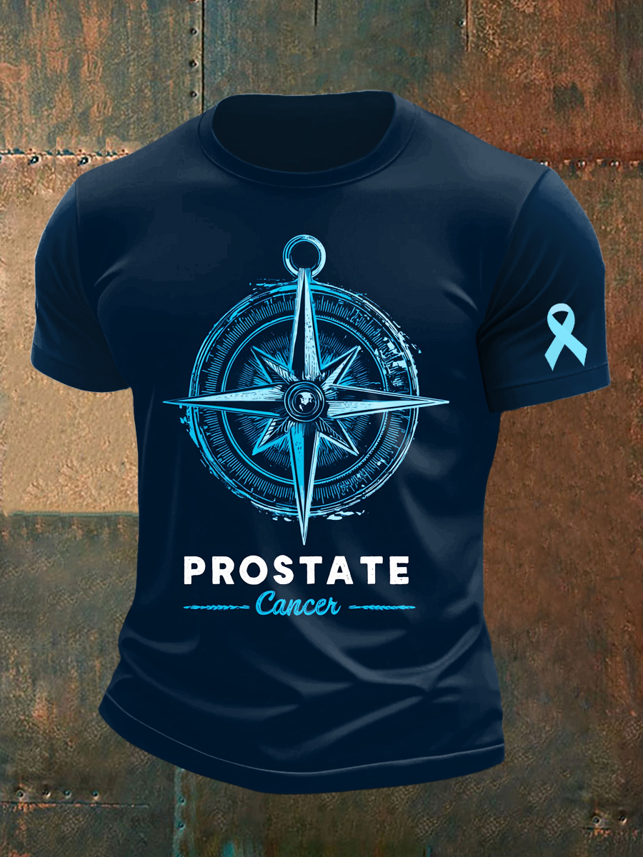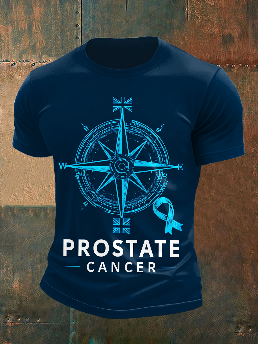 Men's Prostate Cancer Compass Printed Vintage Fashion Loose Short Sleeve T-Shirt