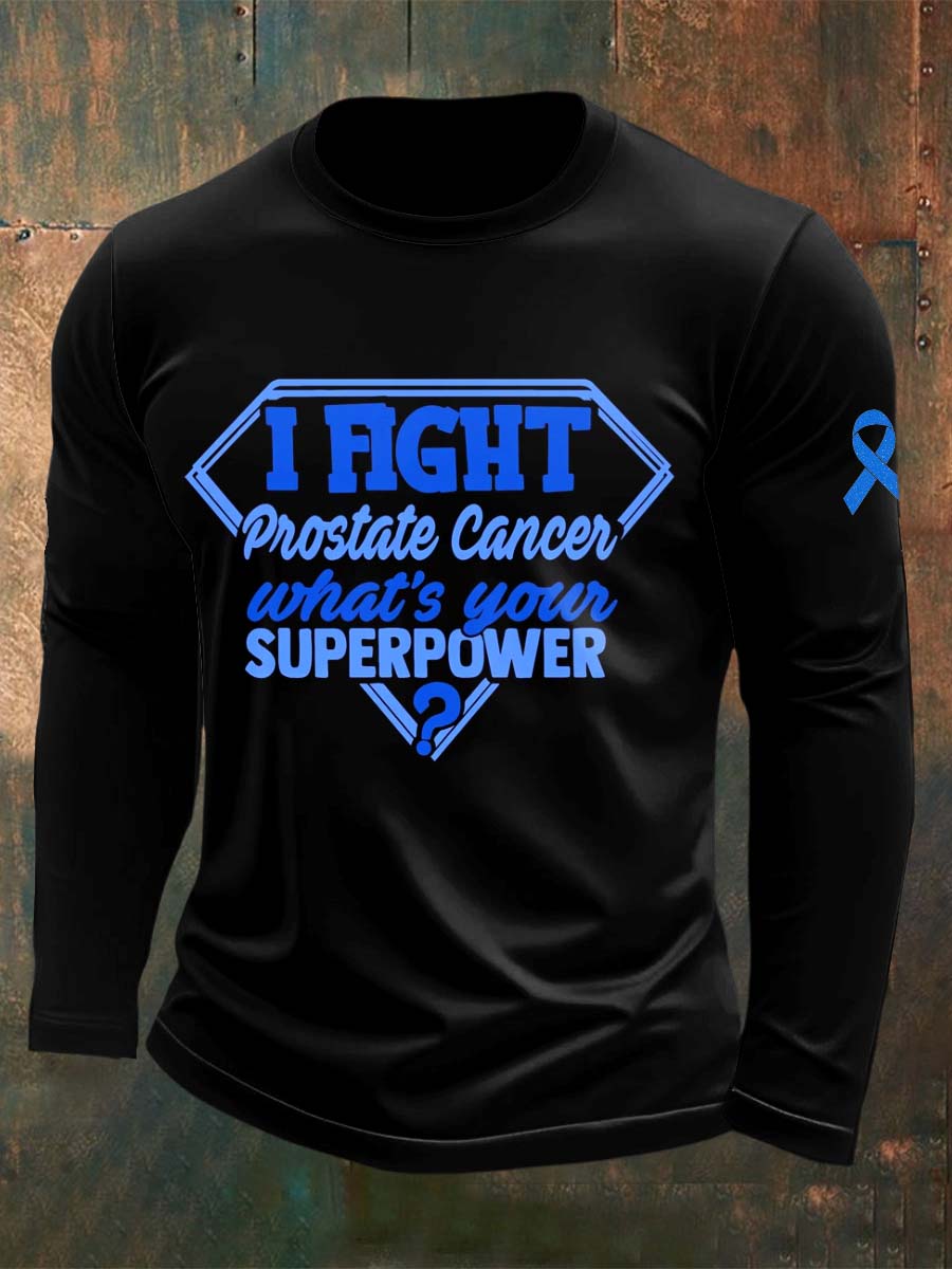 Men's Fight Against Prostate Cancer Printed Crew Neck Casual Long T-shirt