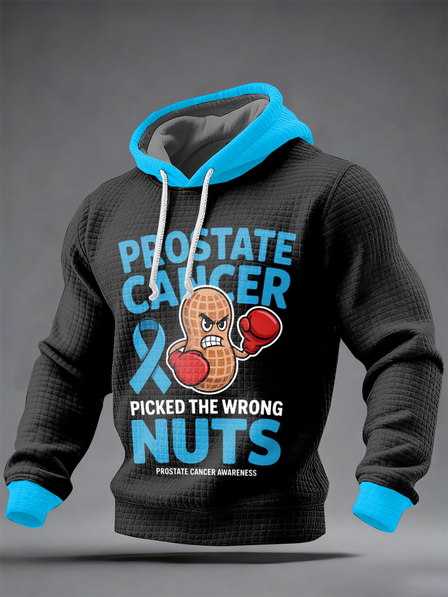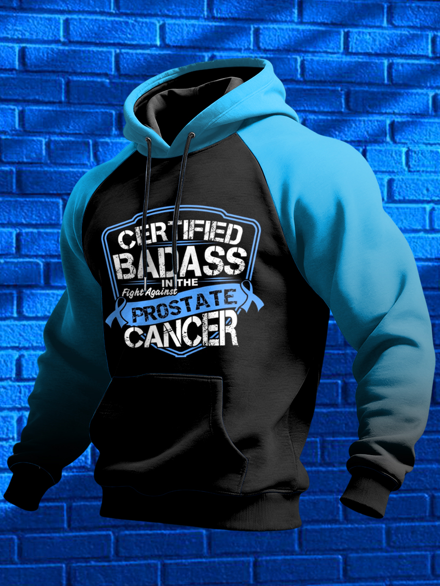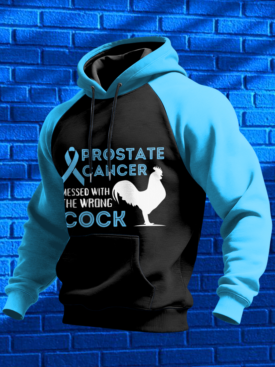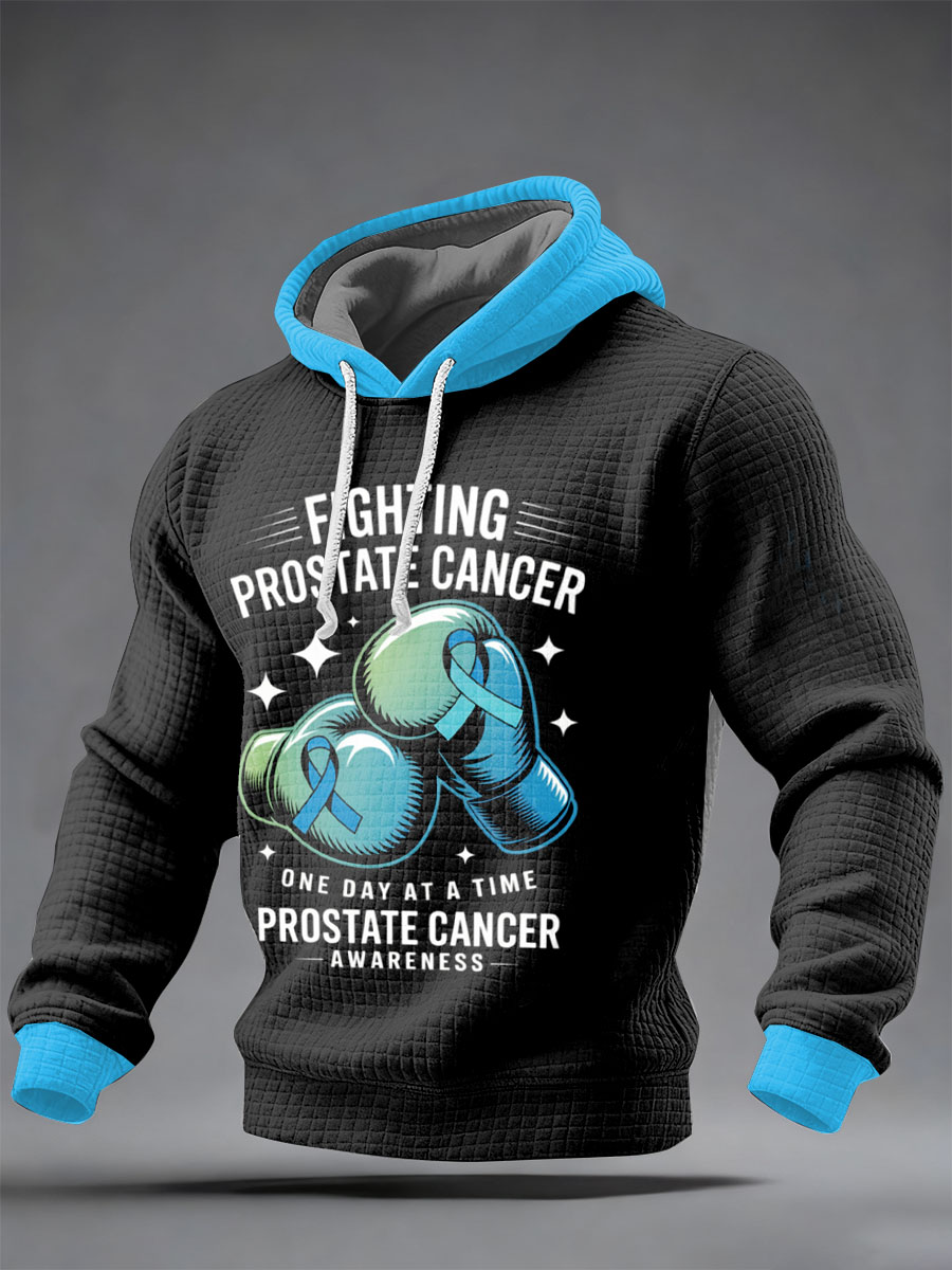 Men's Prostate Cancer Printed Shoulder Hooded Long Sleeved Sweatshirt
