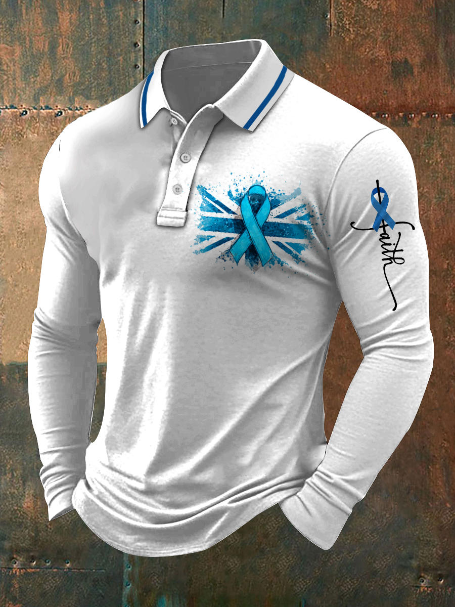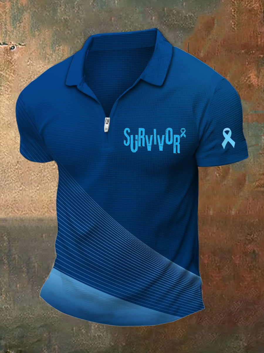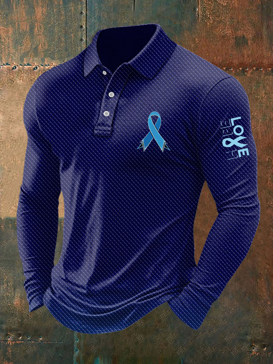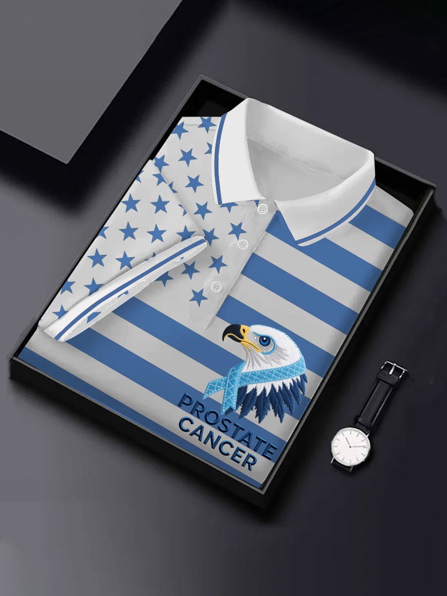Men's Prostate Cancer Printed Polo Neck Short Sleeve T-Shirt