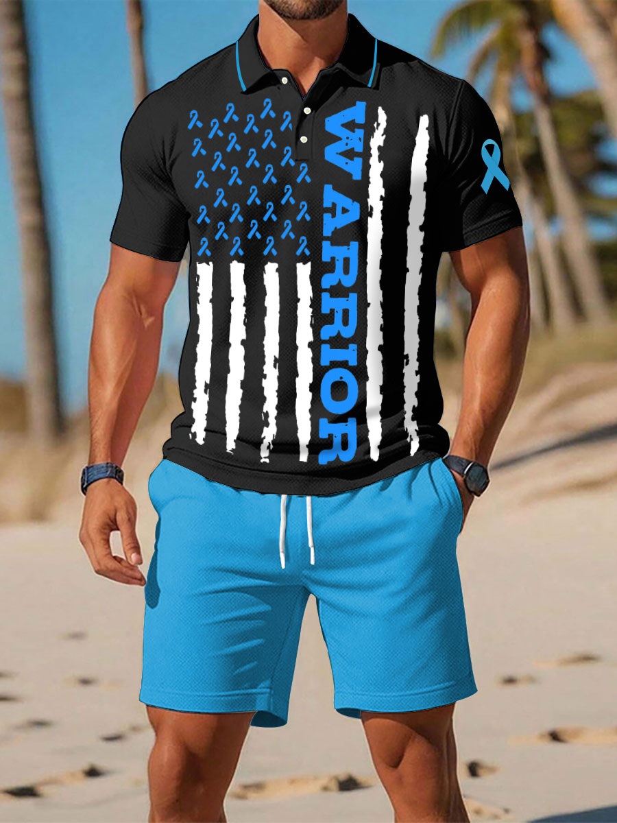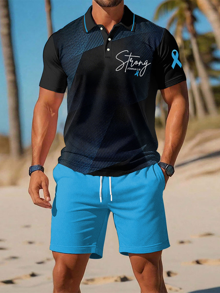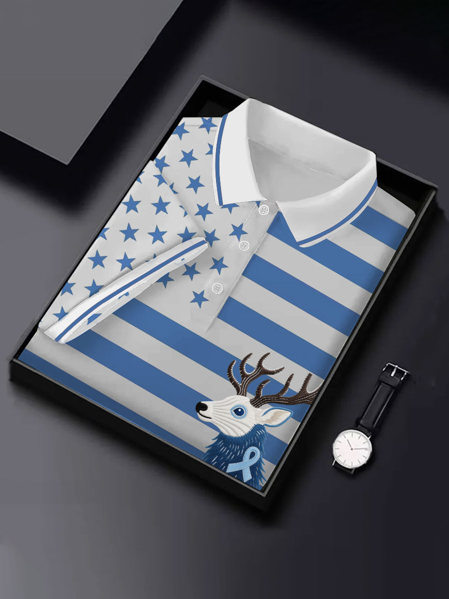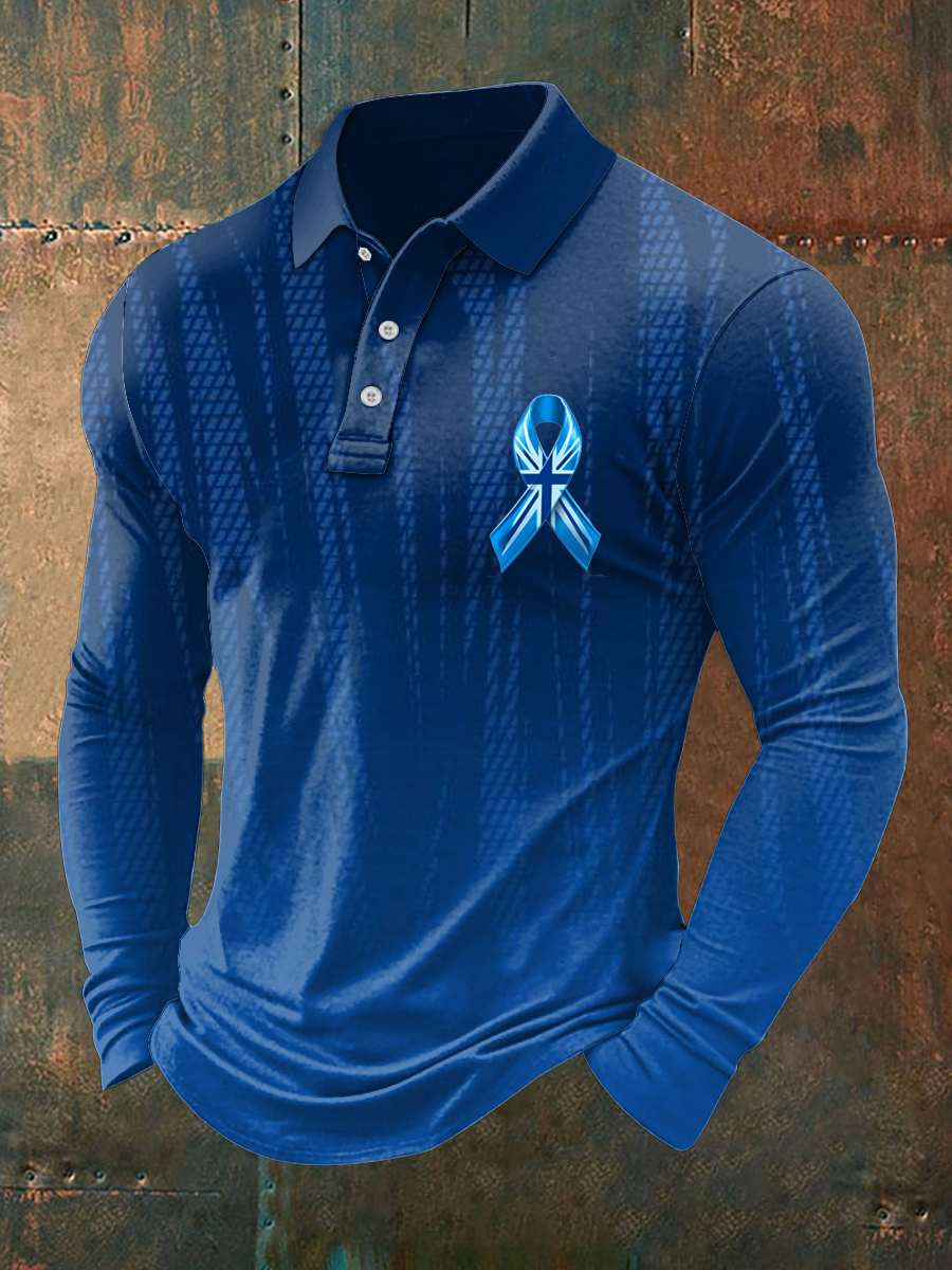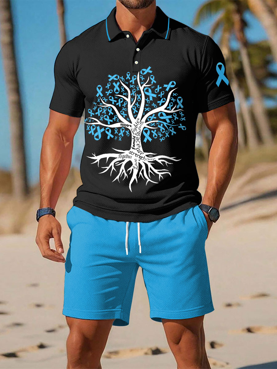 Men's Prostate Cancer Printed Polo Neck Short Sleeve T-Shirt