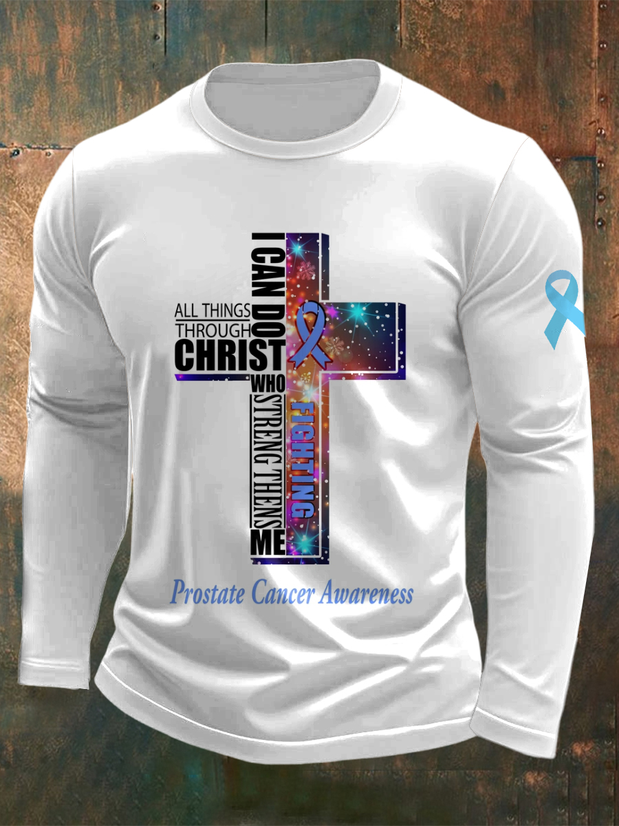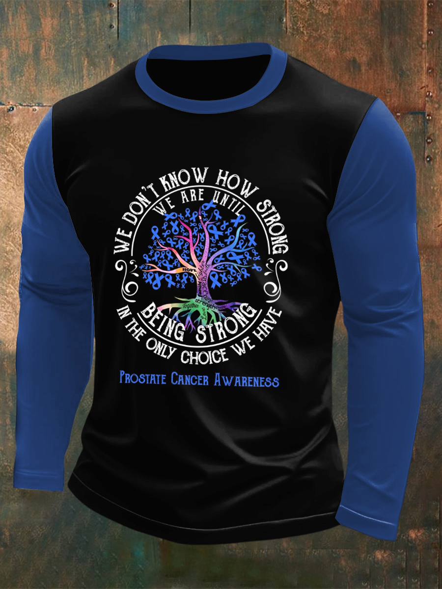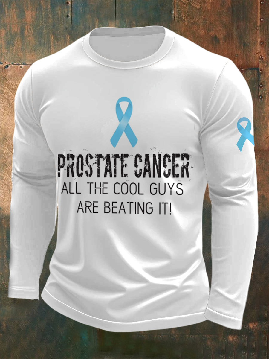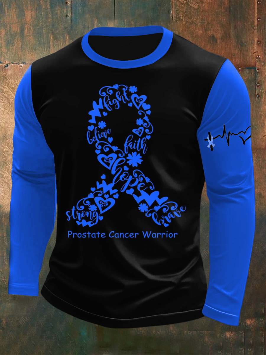 Men's Prostate Cancer Printed Long Sleeved Round Neck T-shirt