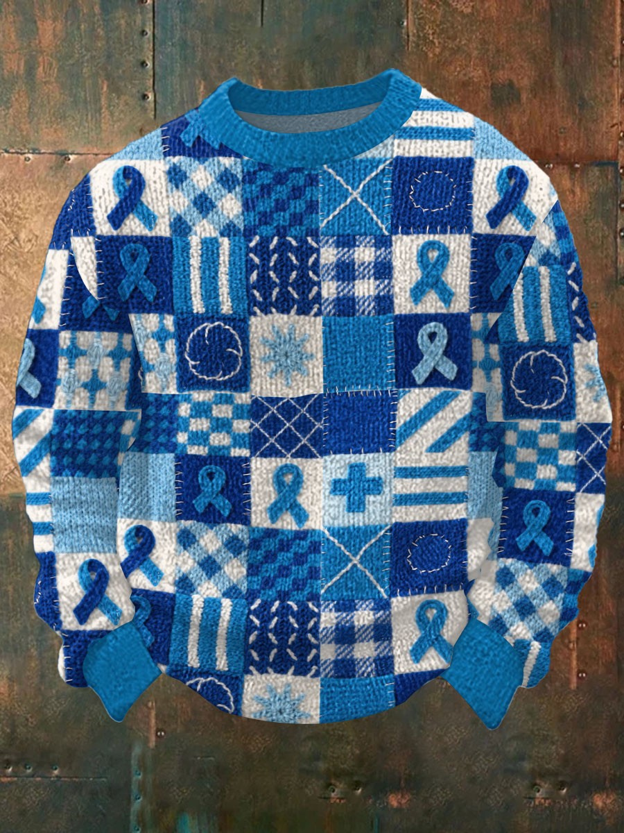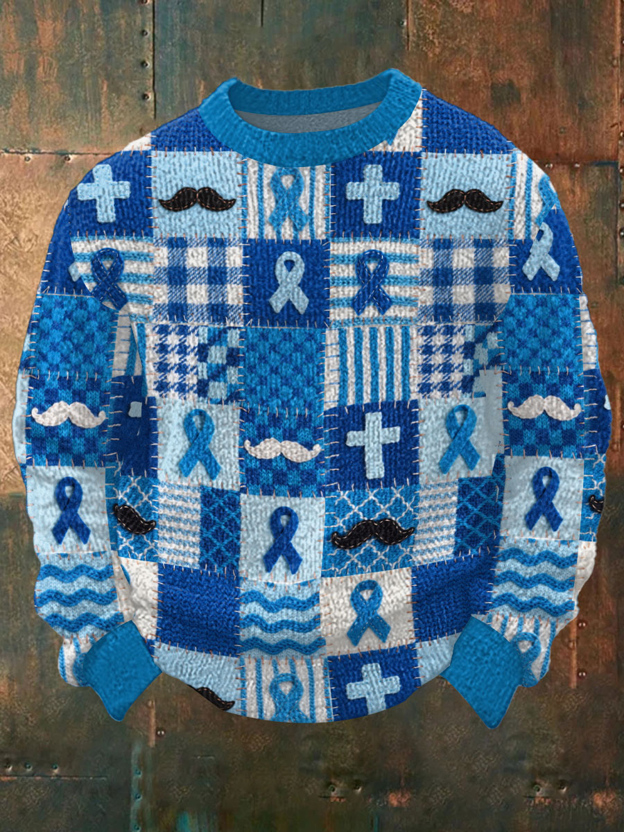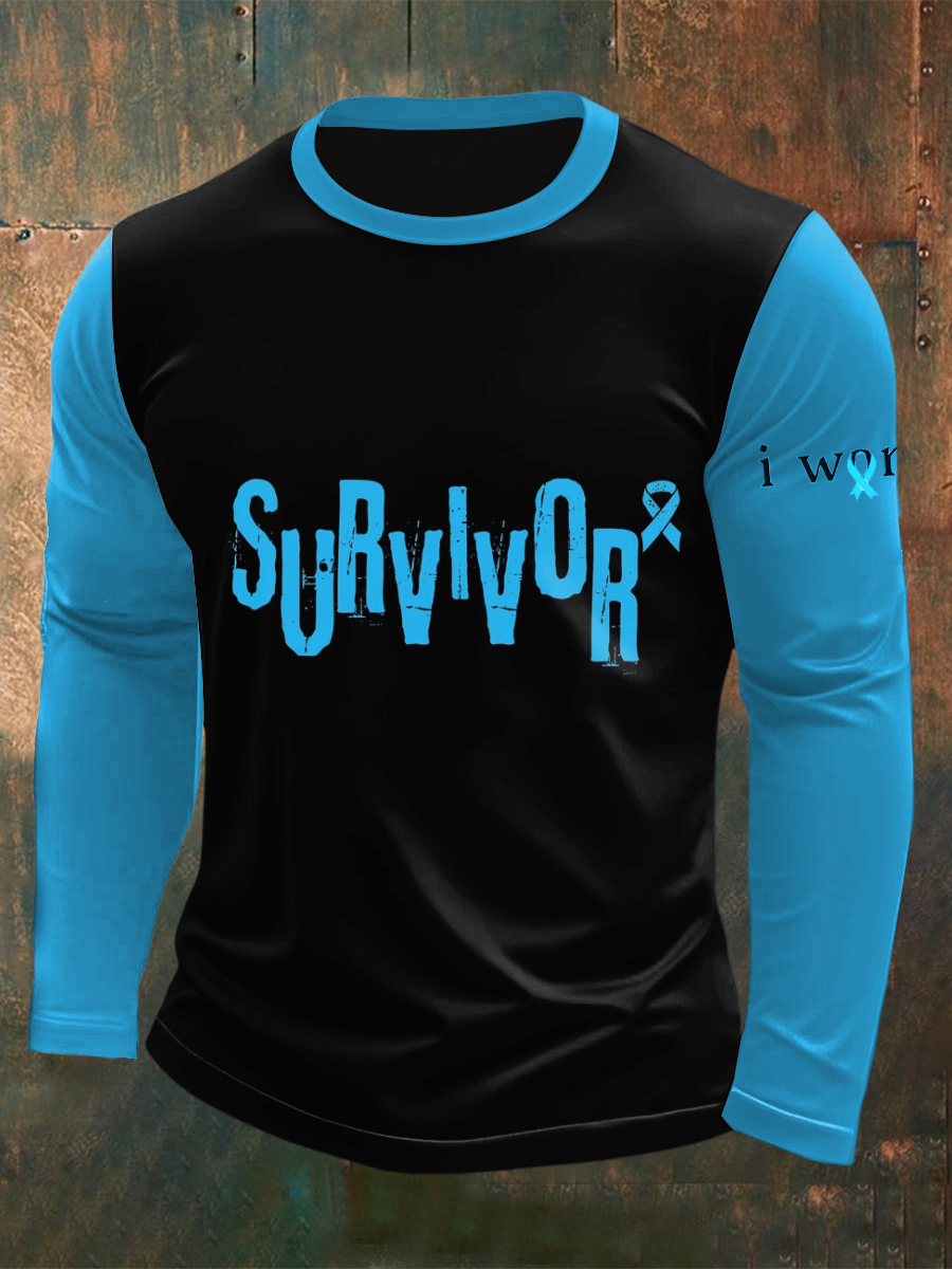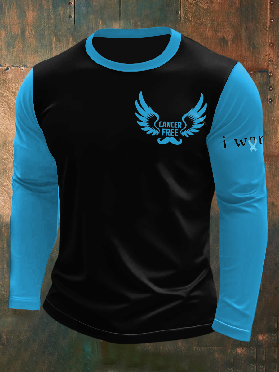 Men's Prostate Cancer Printed Long Sleeved Round Neck T-shirt