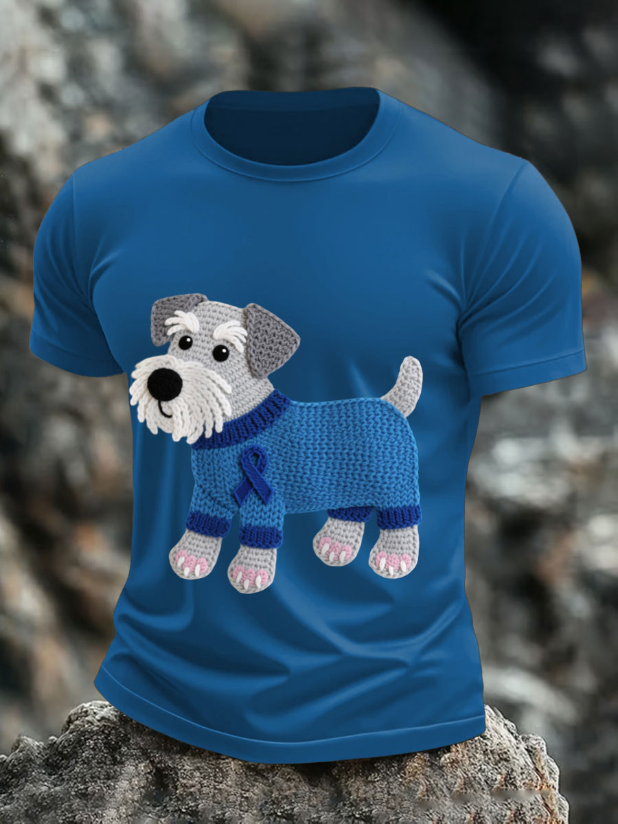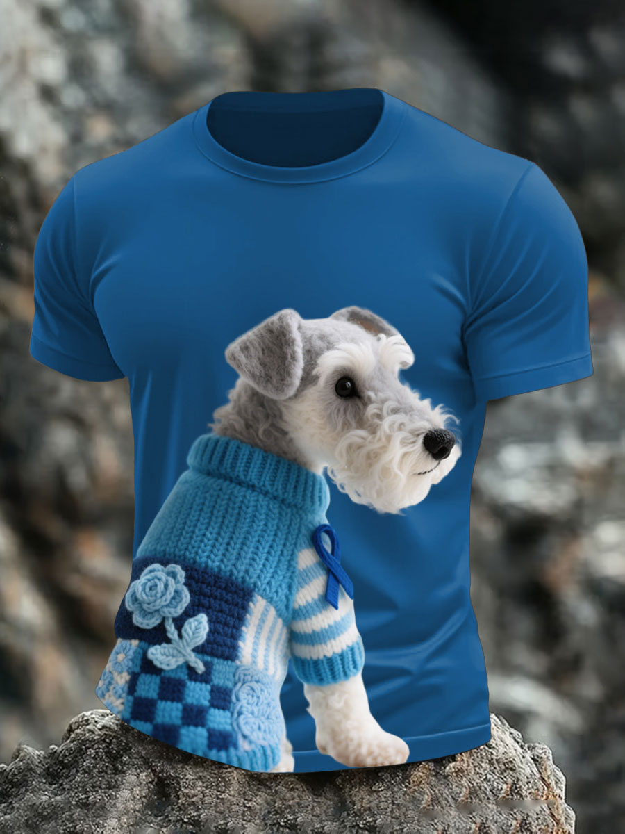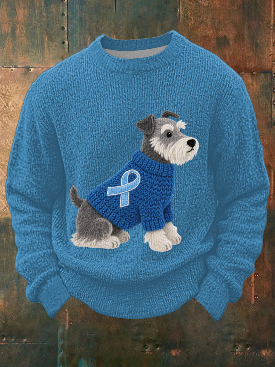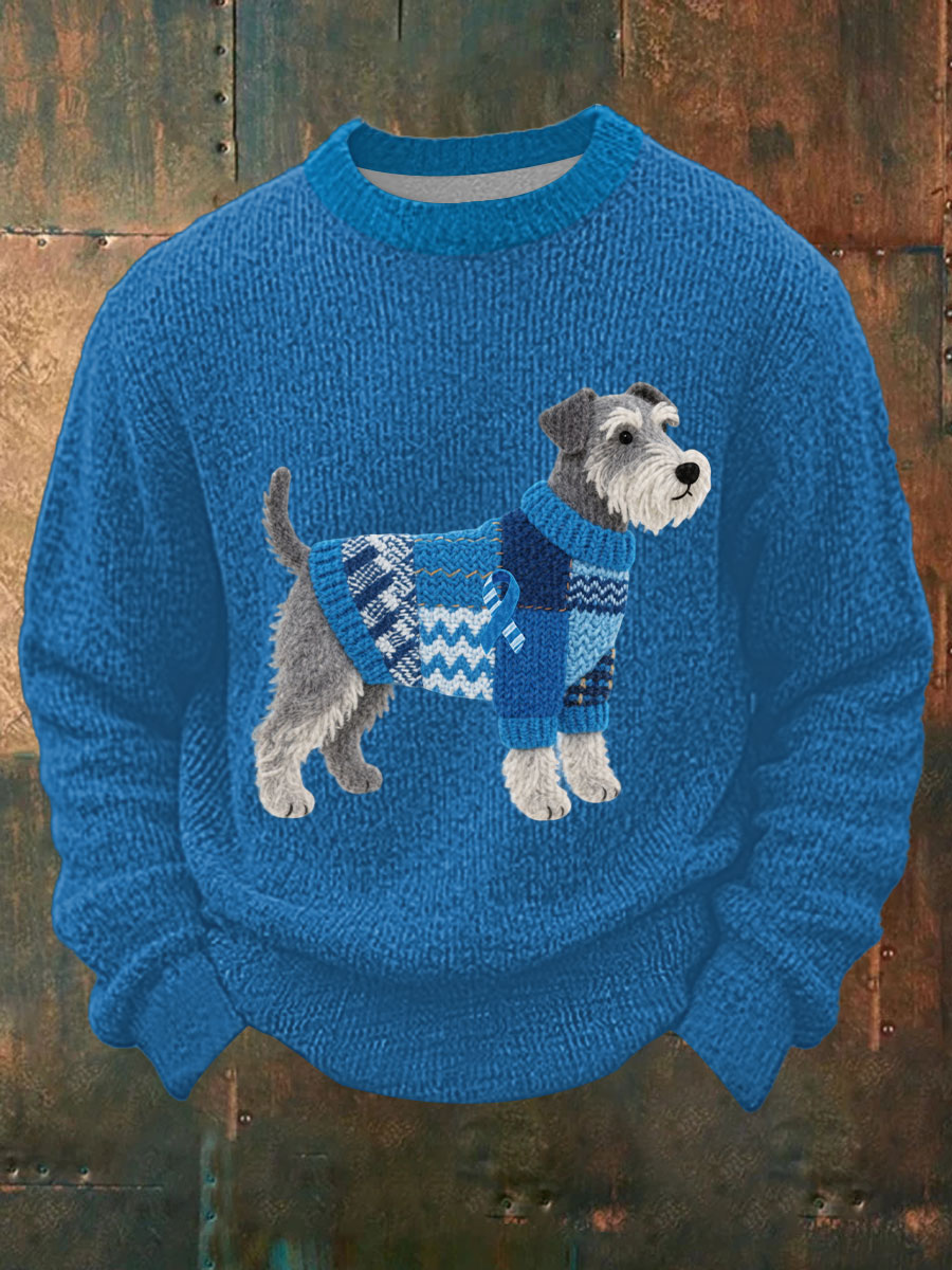 Men's Felt Art Schnauzer Dog Pattern Cozy Knit Top