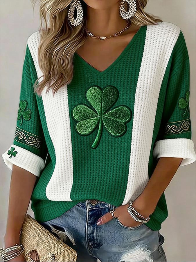 Women's St. Patrick's Day Lucky Shamrocks Print Casual Waffle Sweatshirt