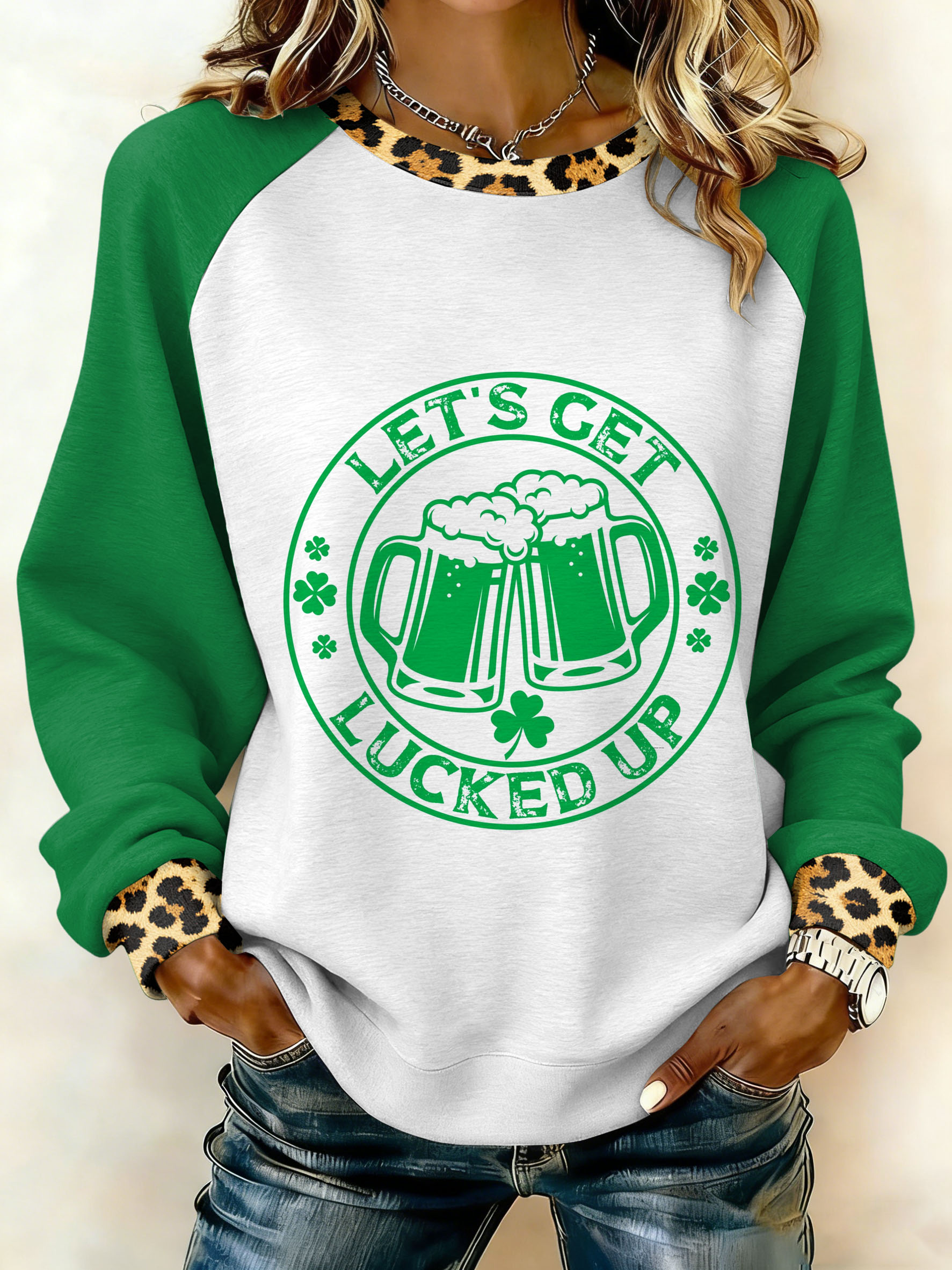 Women's St. Patrick's Day Print Waffle Sweatshirt