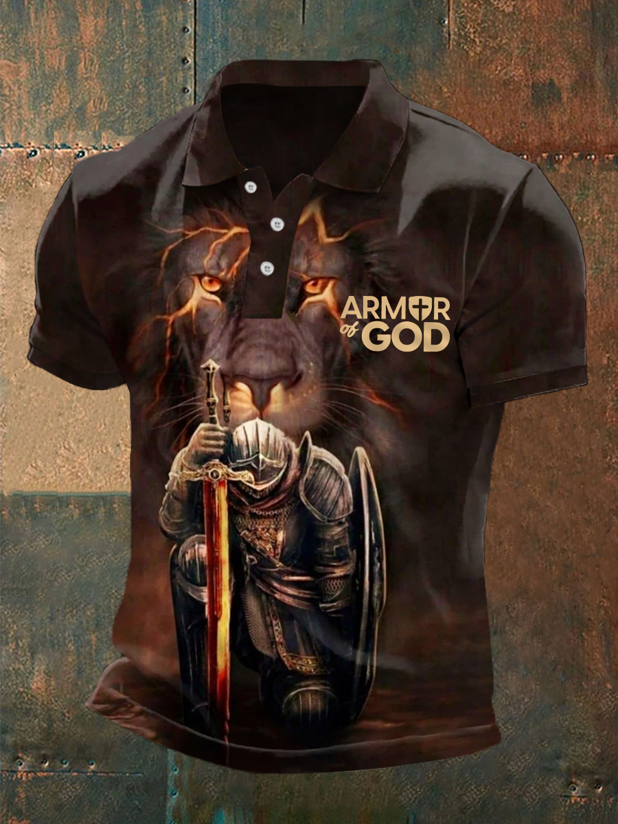 Men's Armor Of God Print Casual Polo