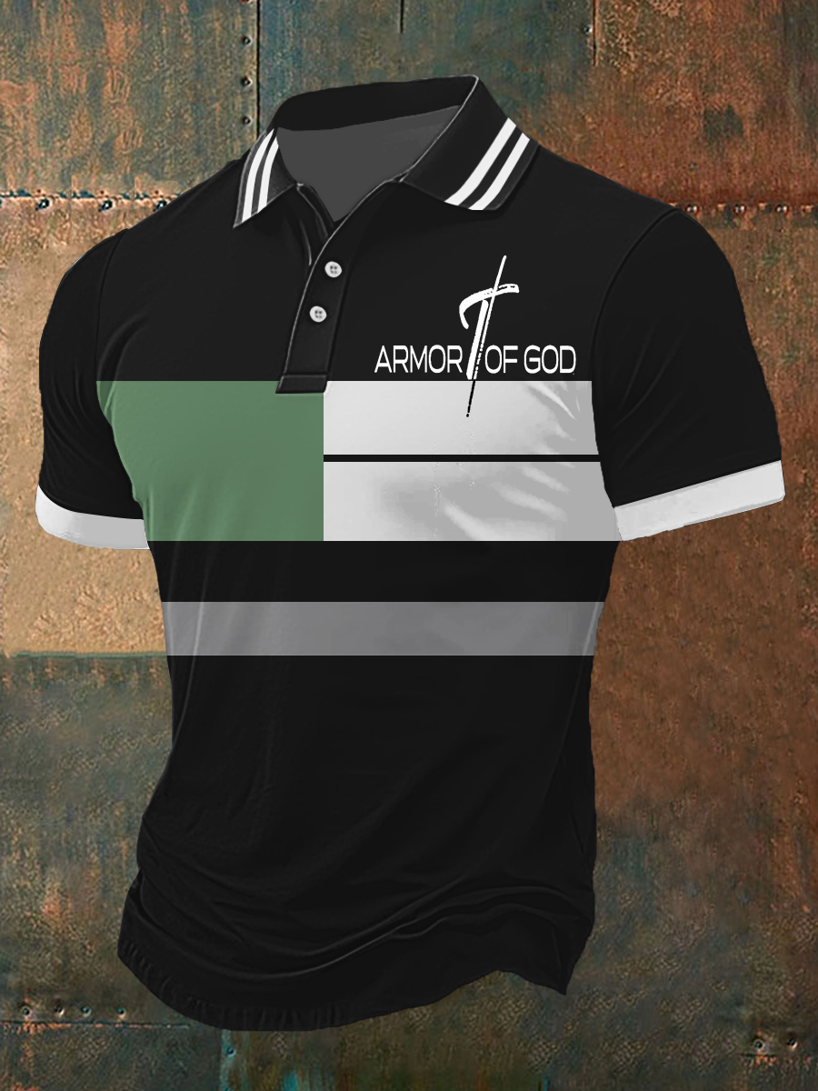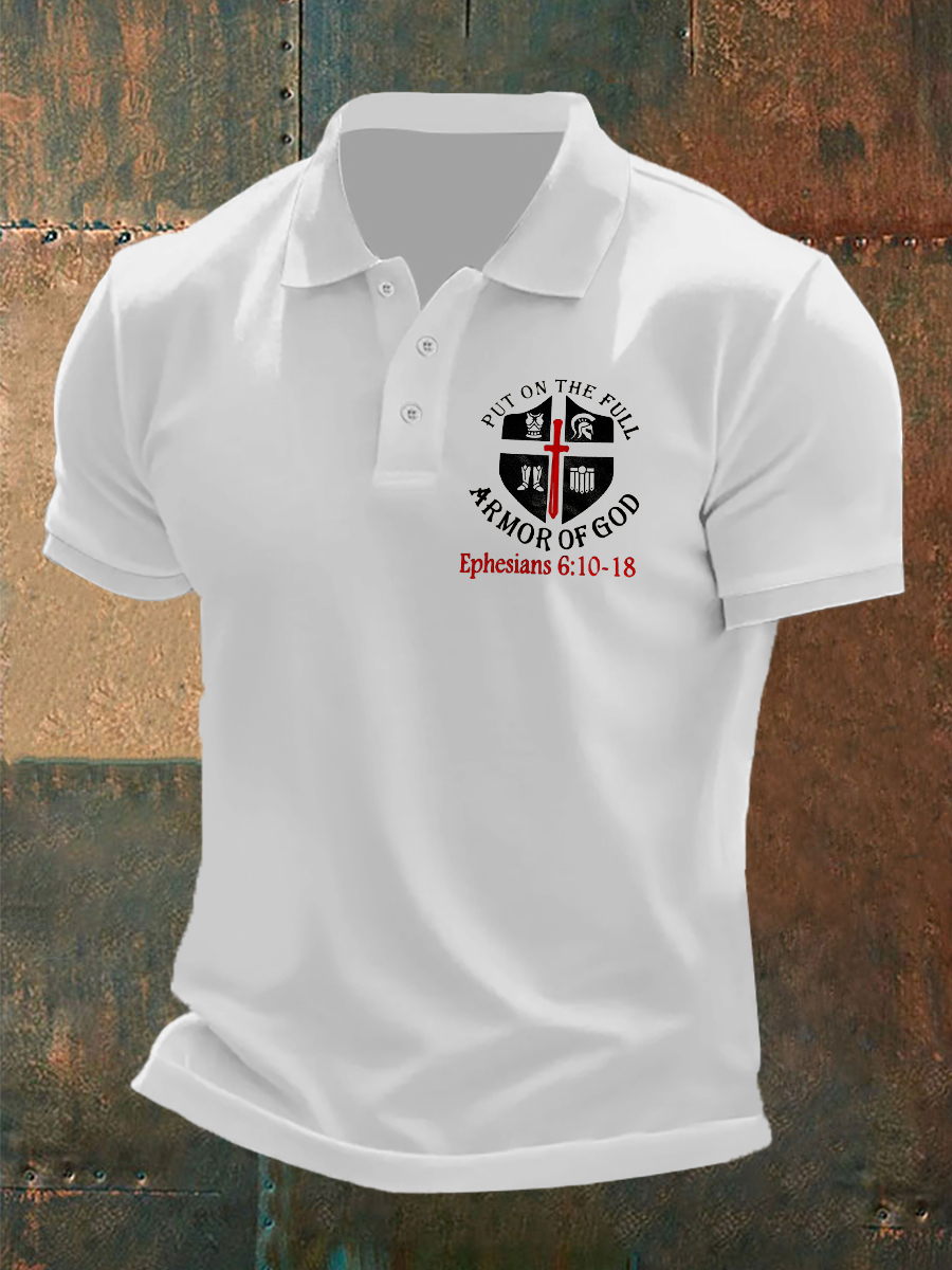 Men's Put On The Whole Armor Of God Print Three Buttons Shoulder Sleeve Polo