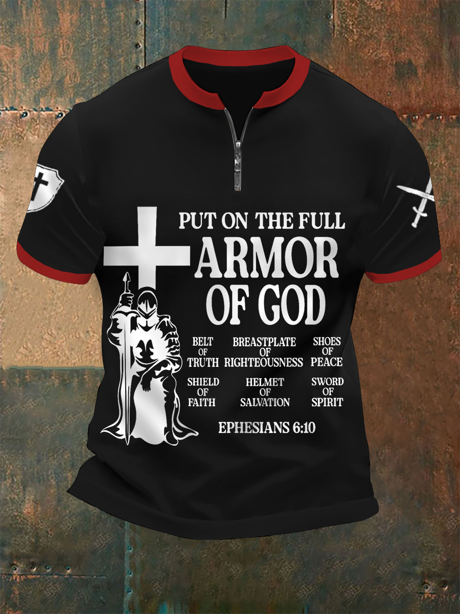 Men's Put On The Full Armor Of God Print Casual Zip Tee
