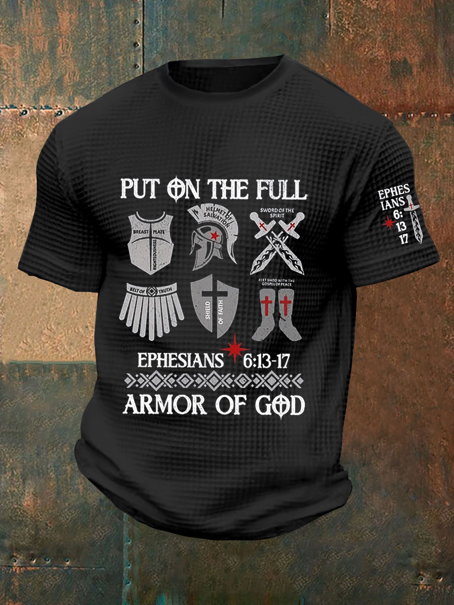 Men's Armor Of God Faith Cross Printed Casual Waffle Short Sleeve T-shirt