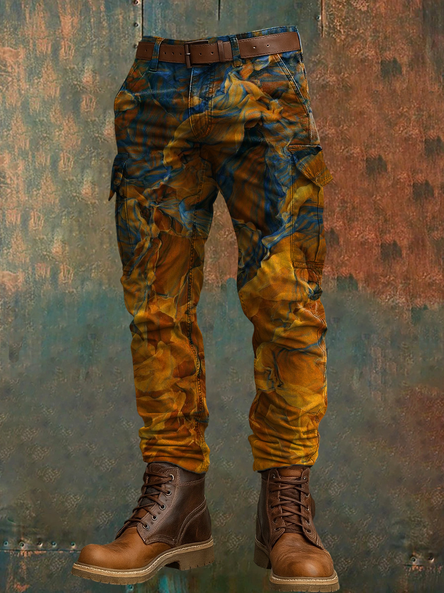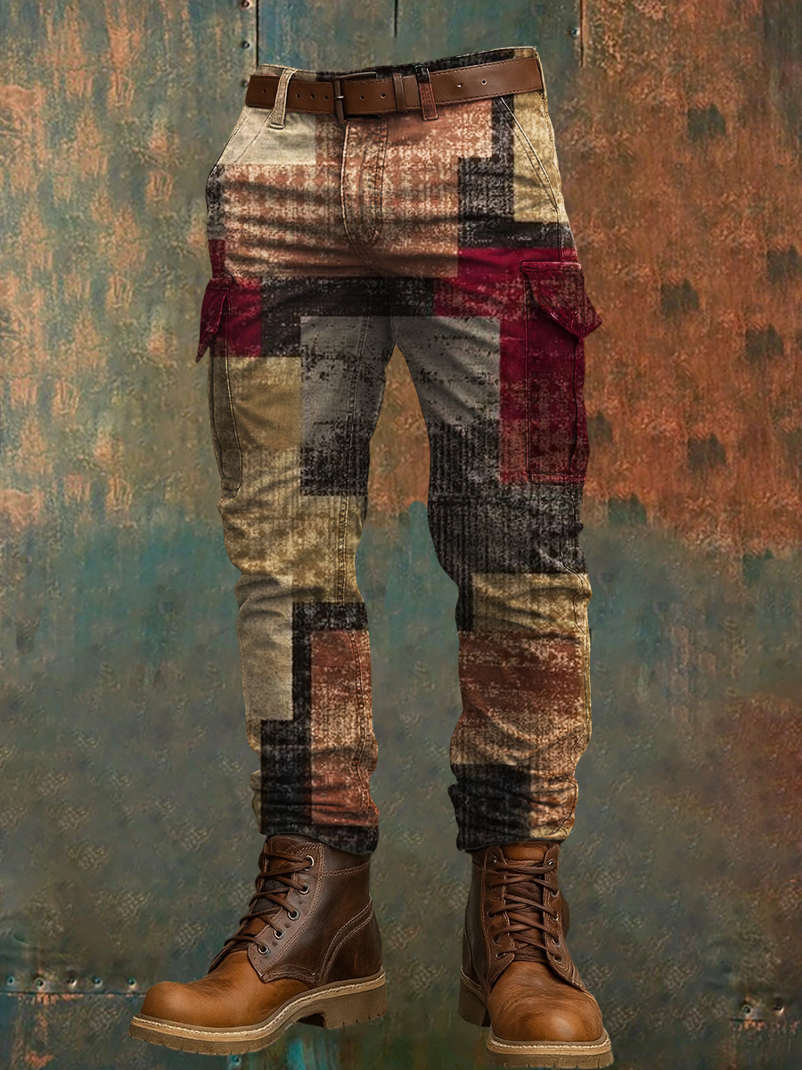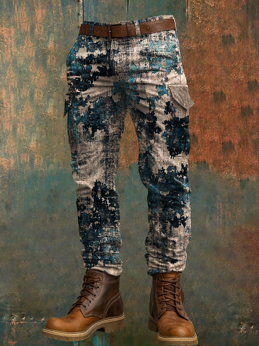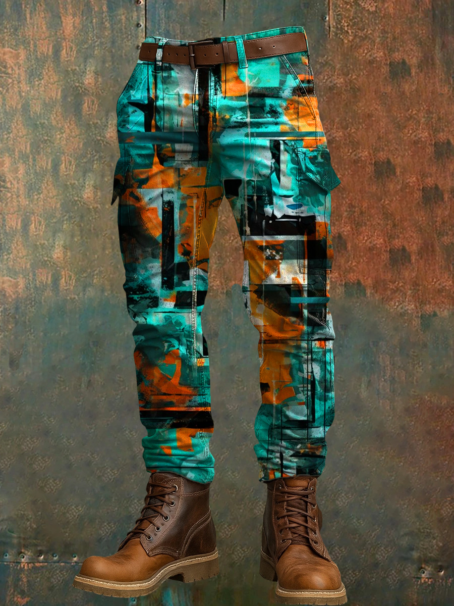 Men's Retro Vacation Business Art Print Casual Workwear Trousers