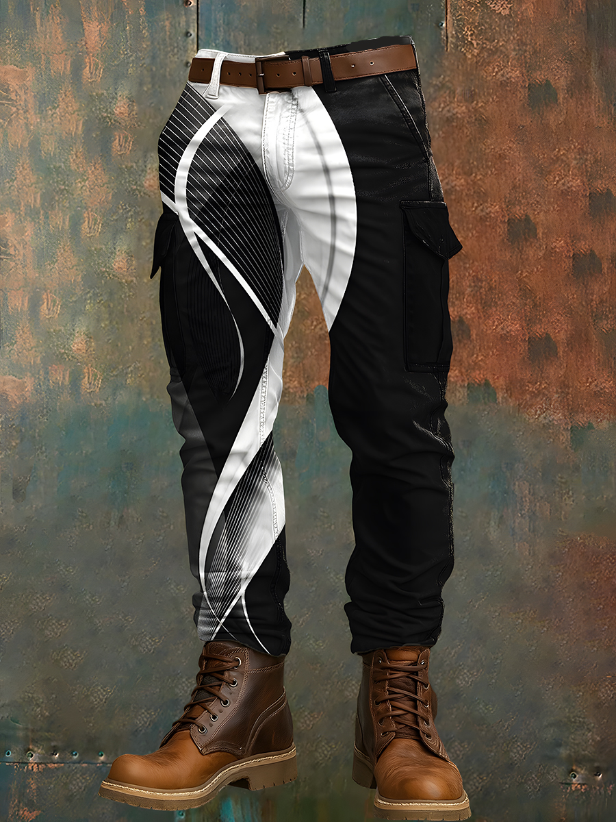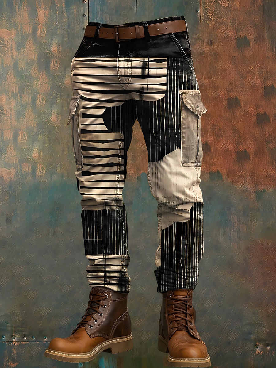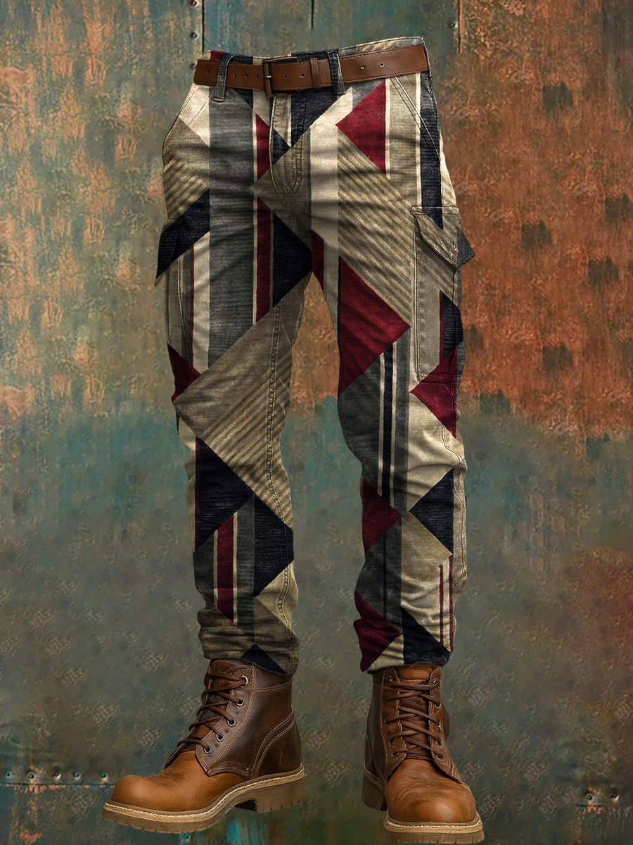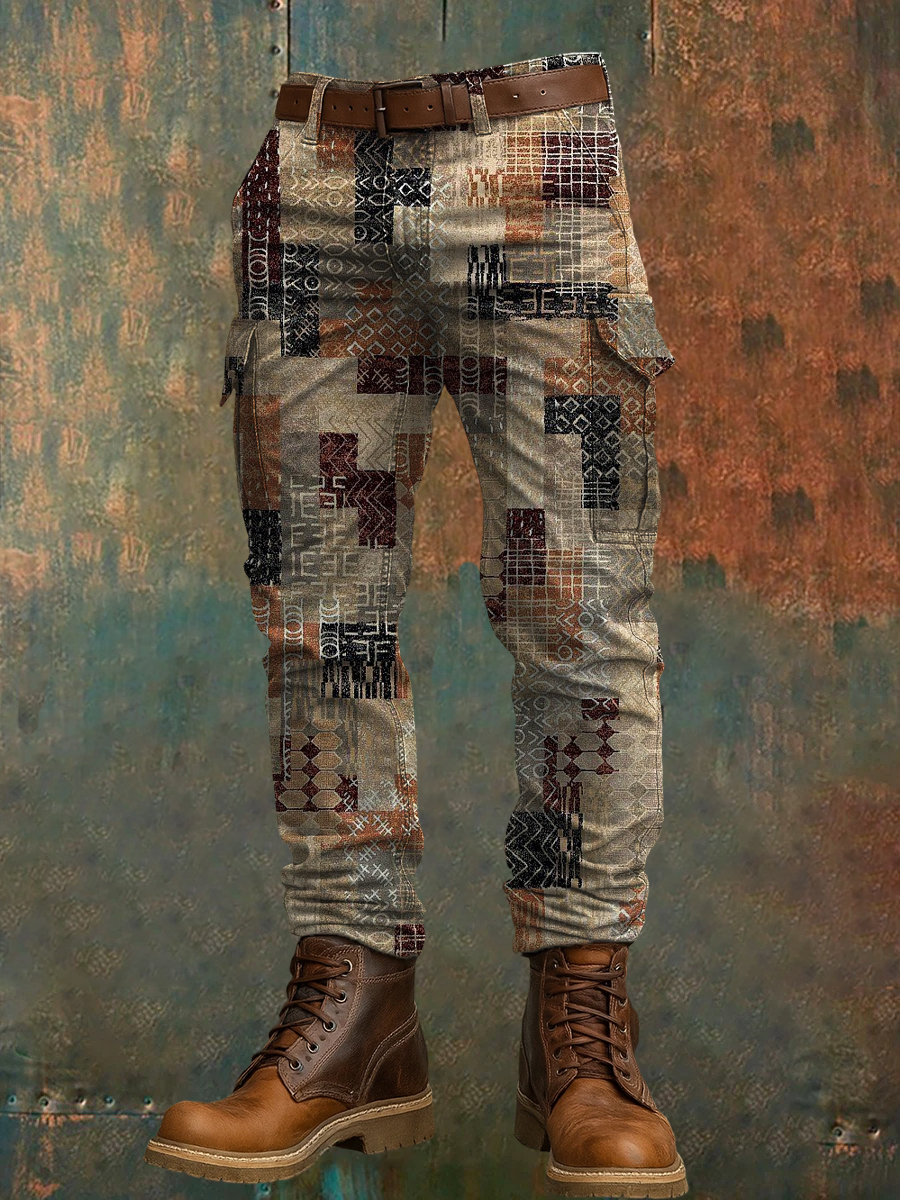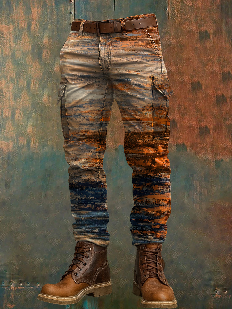 Men's Retro Vacation Business Art Print Casual Workwear Trousers
