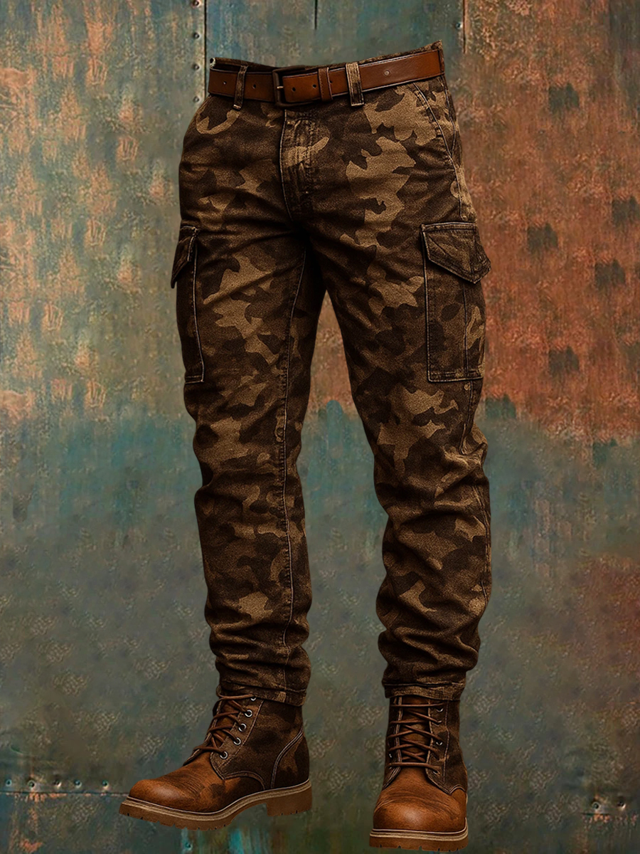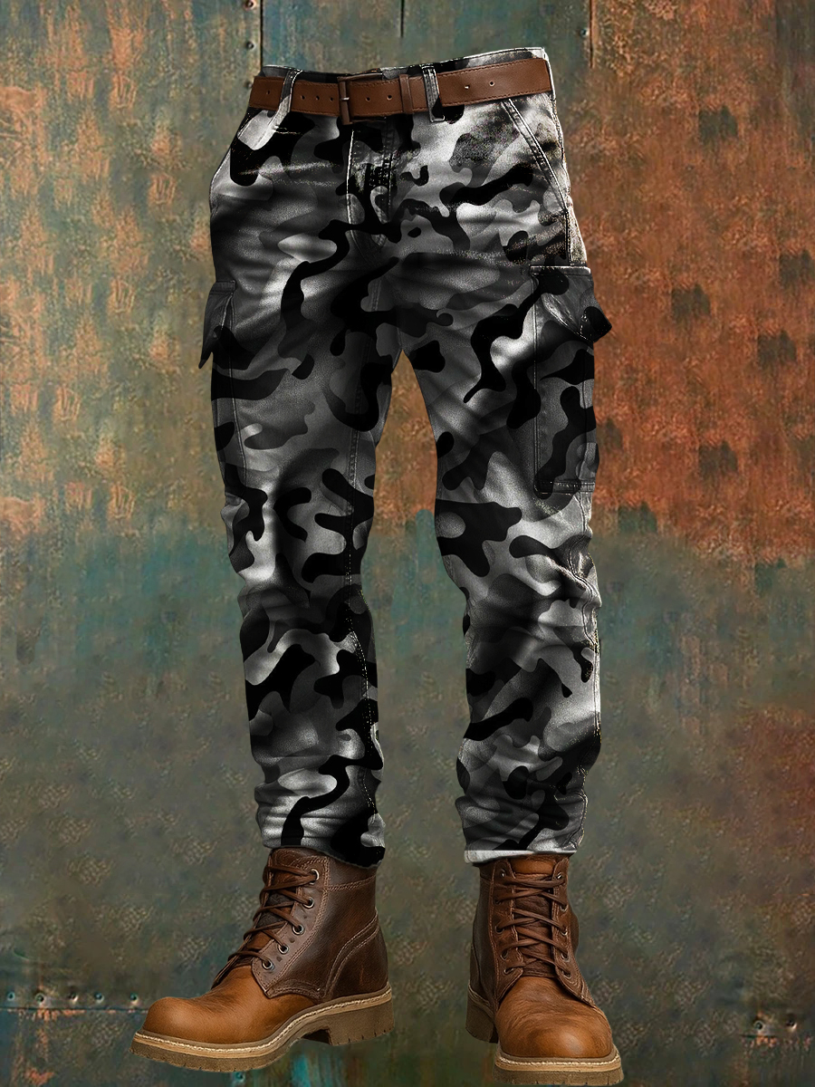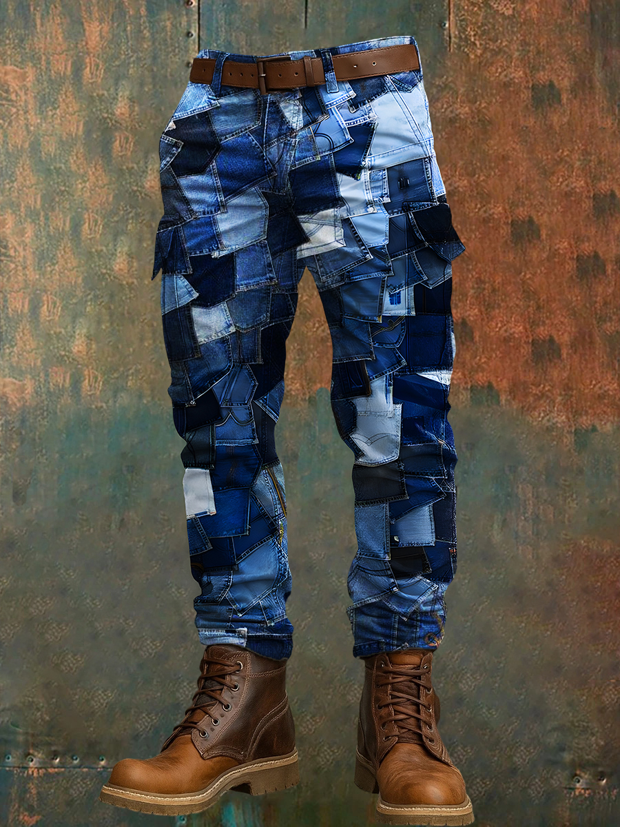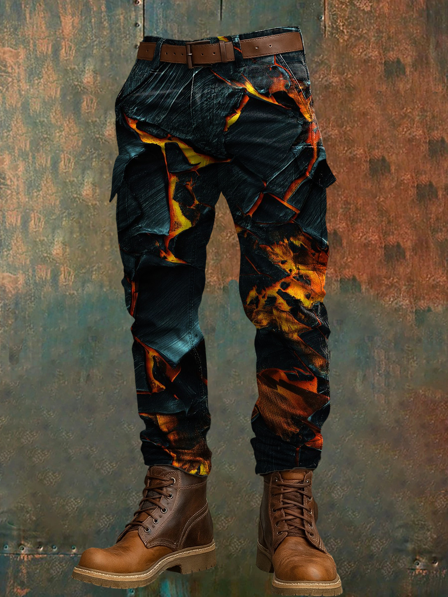 Men's Retro Vacation Business Art Print Casual Workwear Trousers