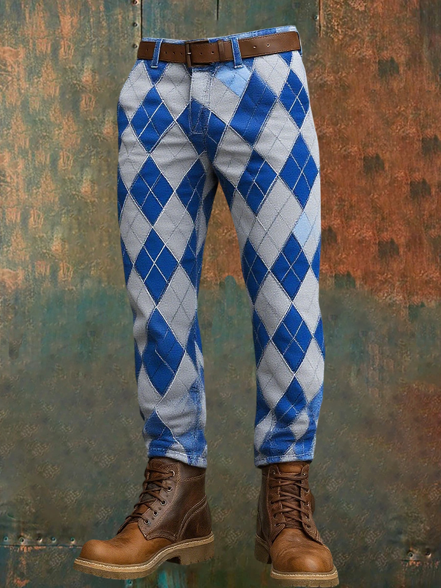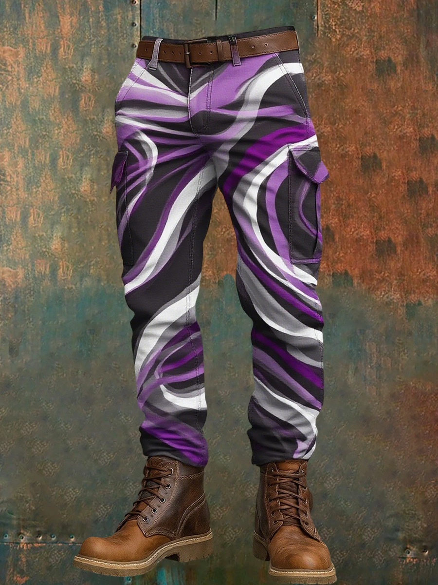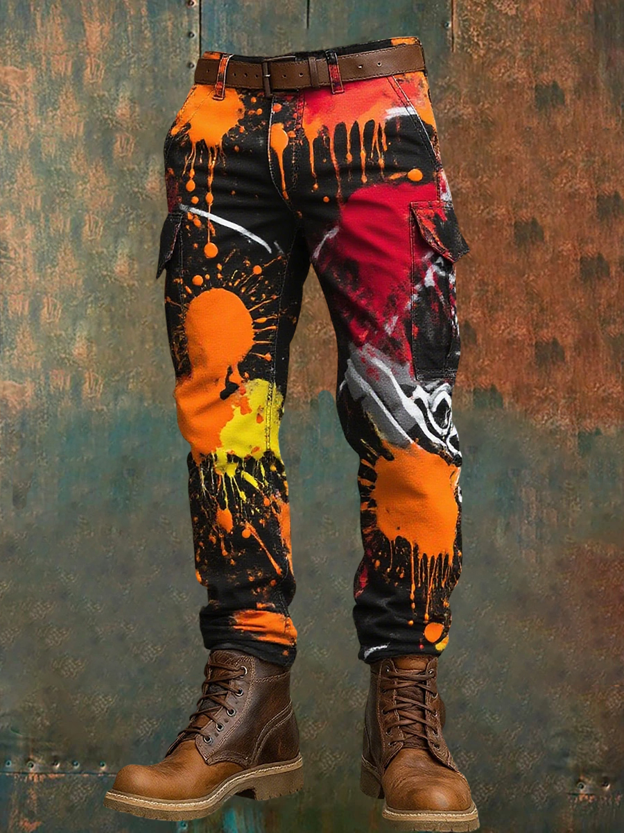 Men's Retro Vacation Business Art Print Casual Workwear Trousers