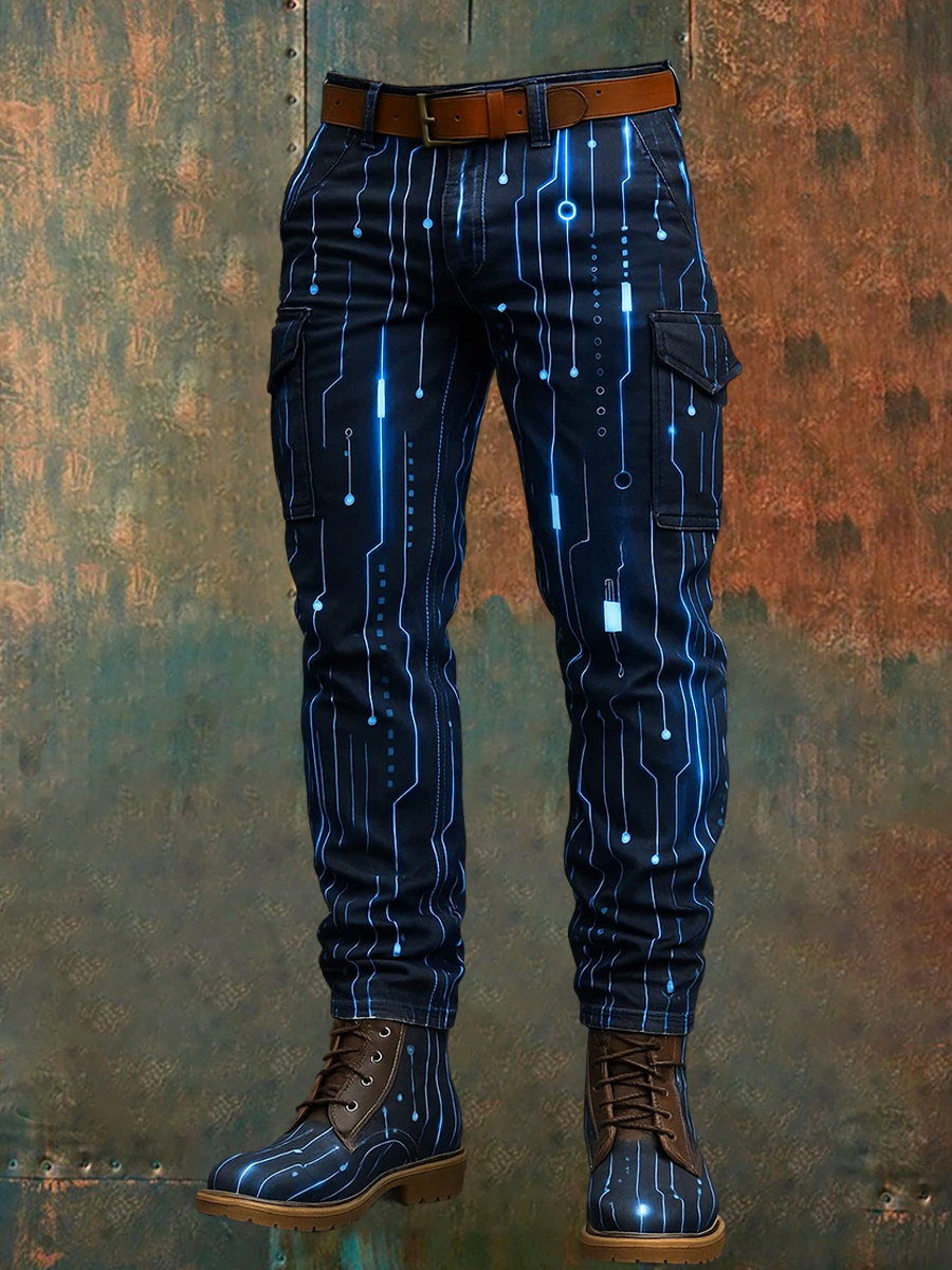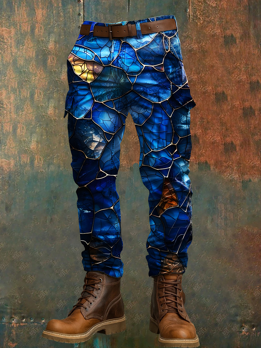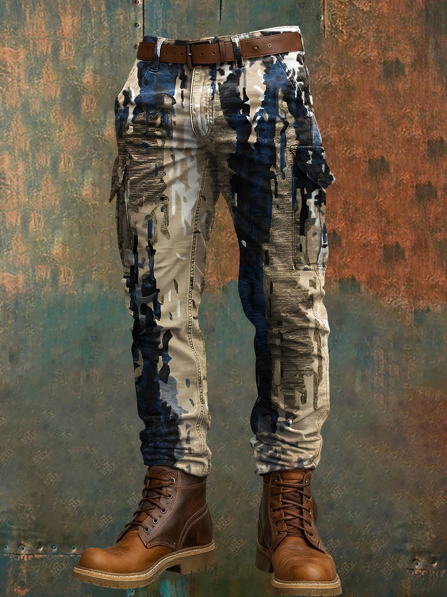 Men's Retro Vacation Business Art Print Casual Workwear Trousers