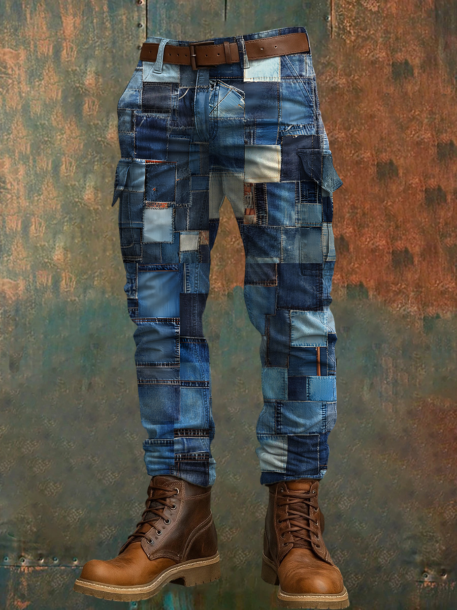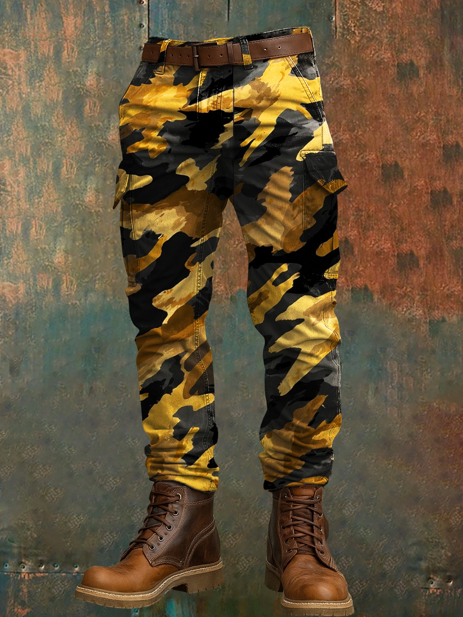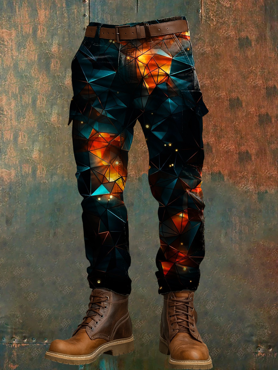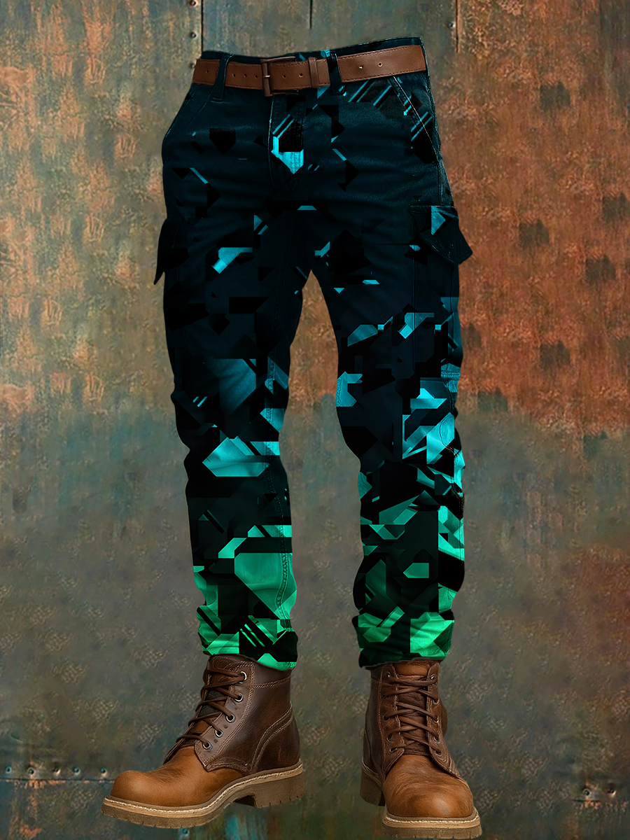Men's Retro Vacation Business Art Print Casual Workwear Trousers