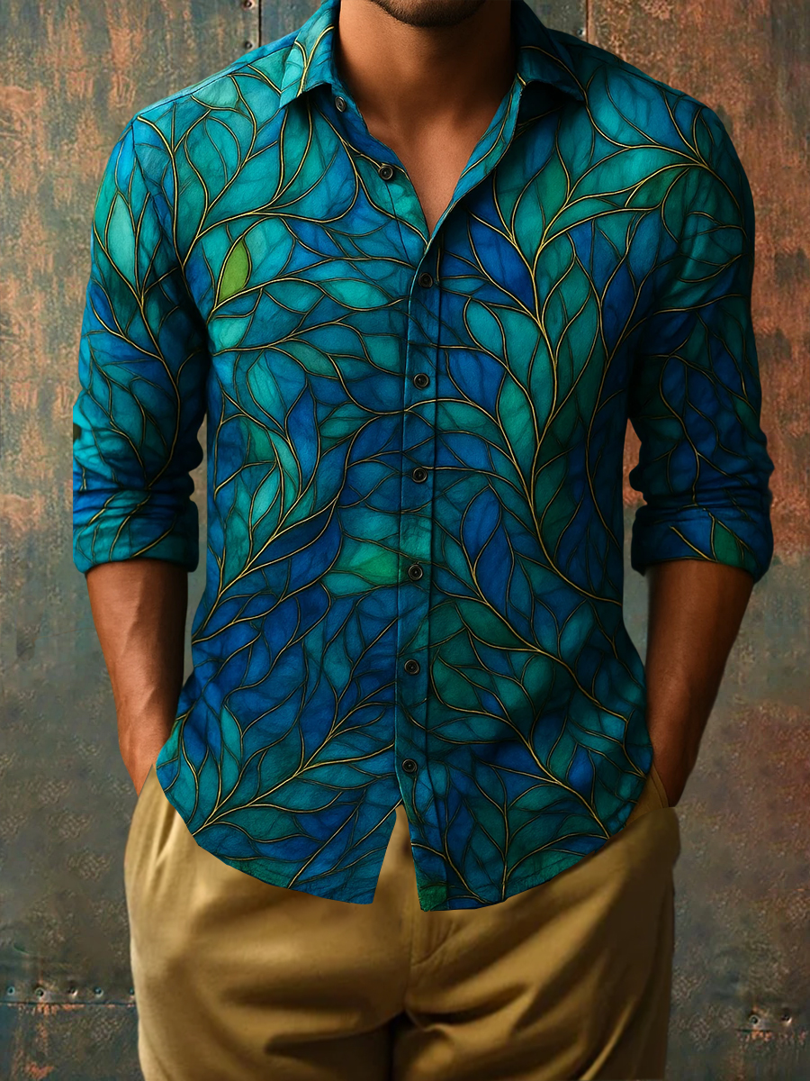 Men's Business Vacation Style Printed Casual Long-Sleeved Shirt