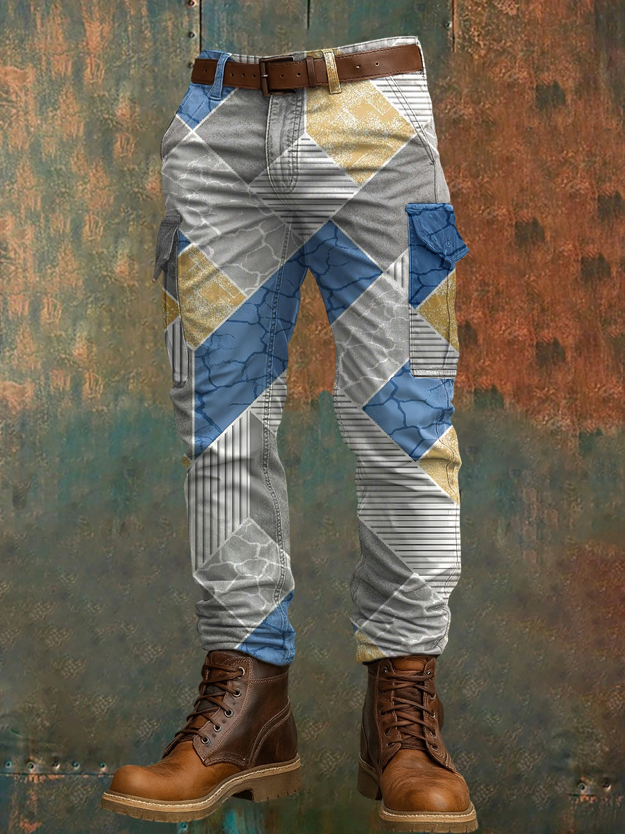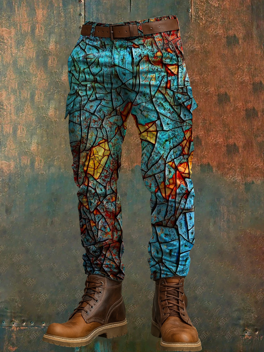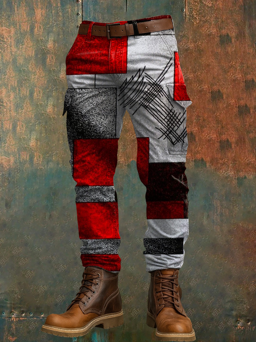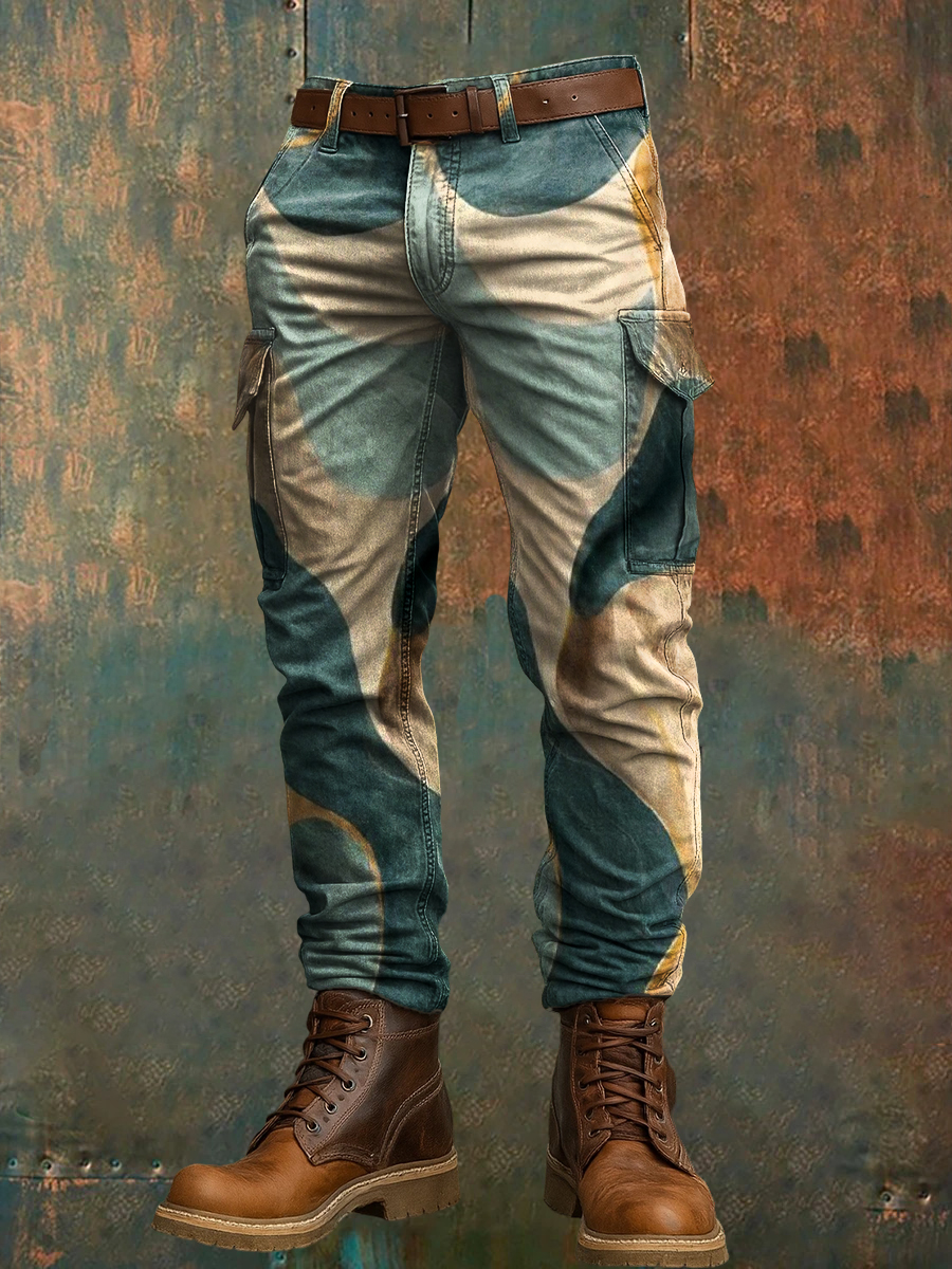 Men's Retro Vacation Business Art Print Casual Workwear Trousers
