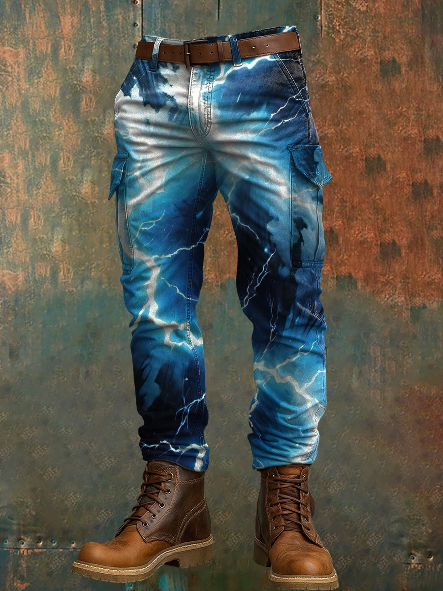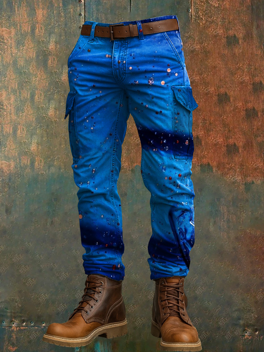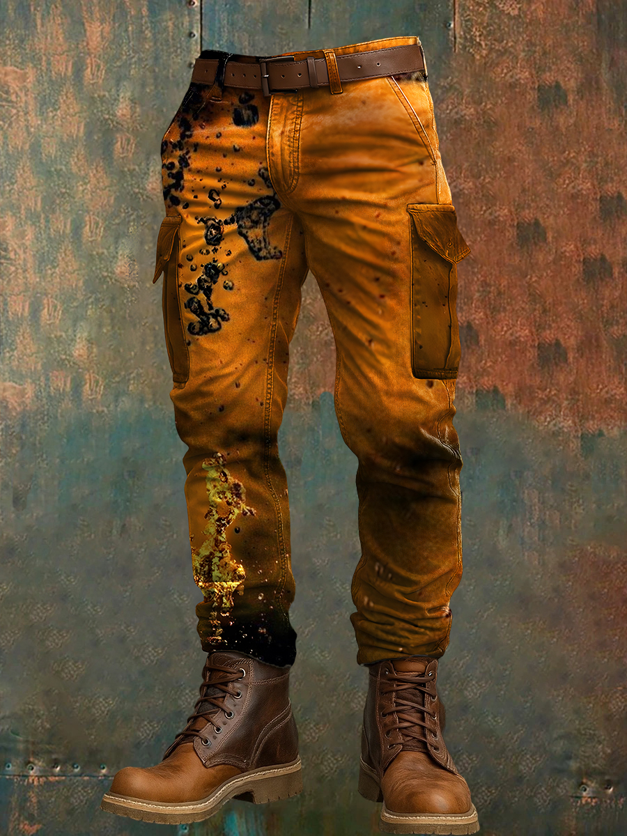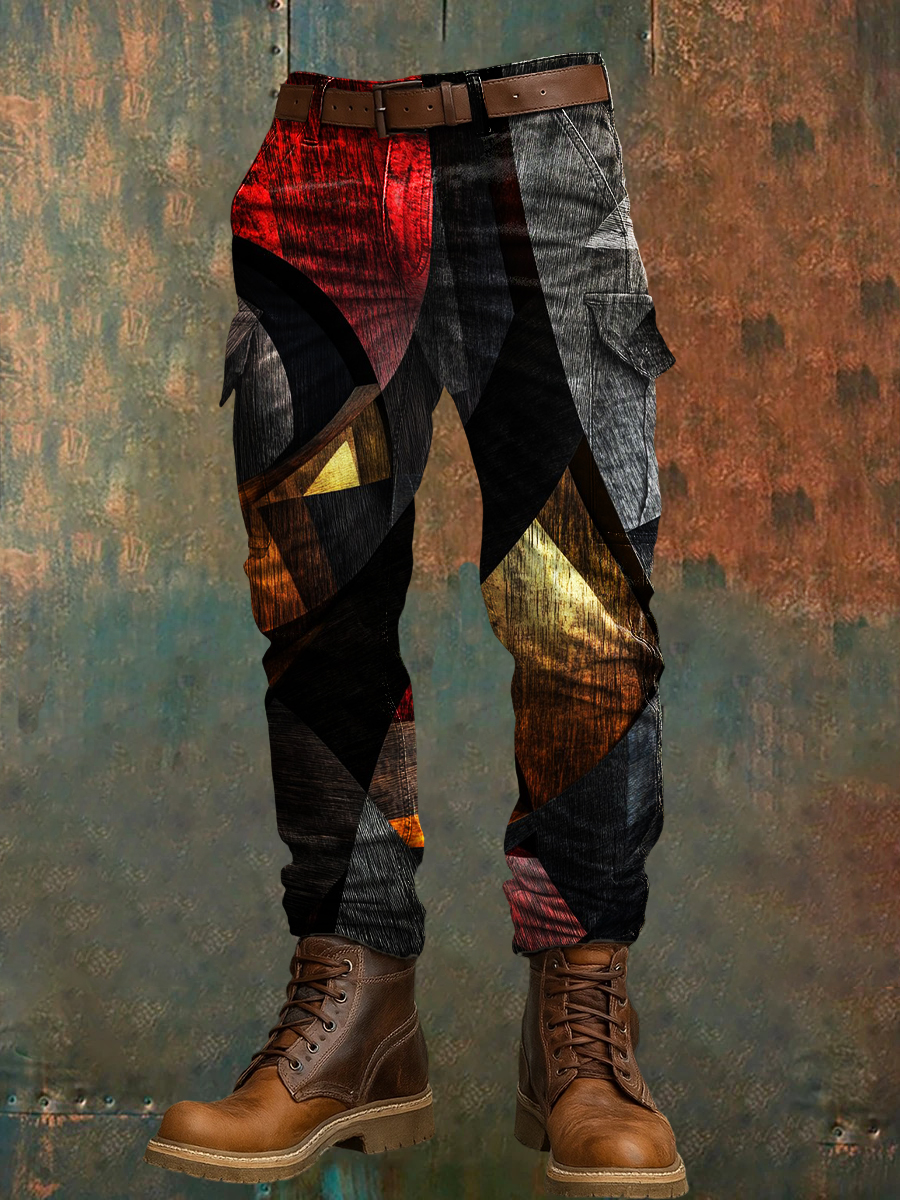 Men's Retro Vacation Business Art Print Casual Workwear Trousers