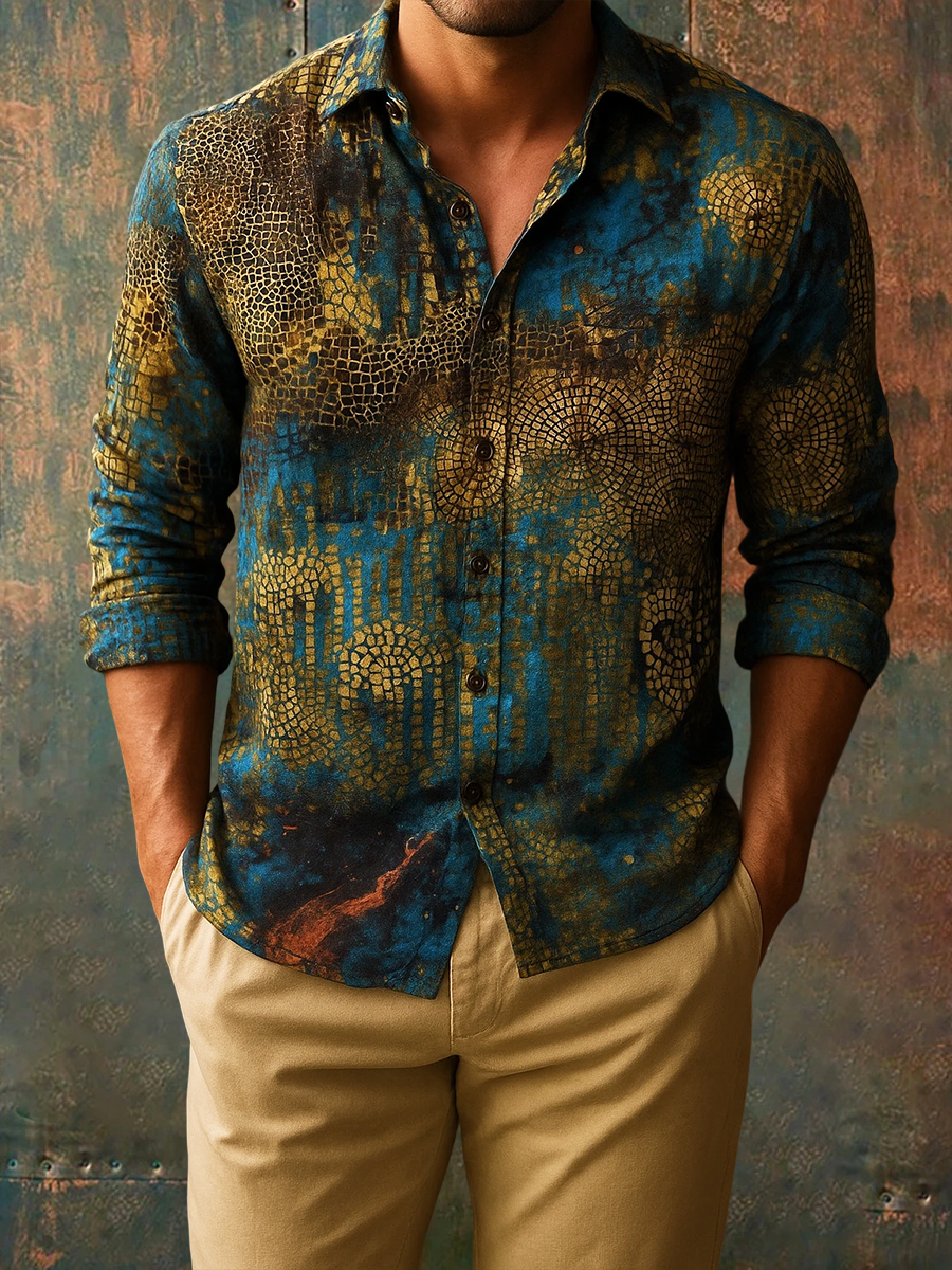 Men's Business Vacation Style Printed Casual Long-Sleeved Shirt