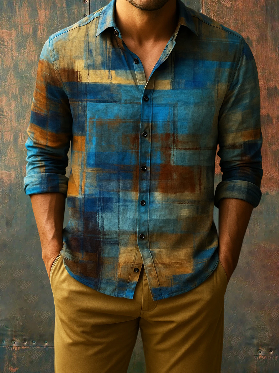 Men's Retro Vacation Business Style Casual Long Sleeve Shirt