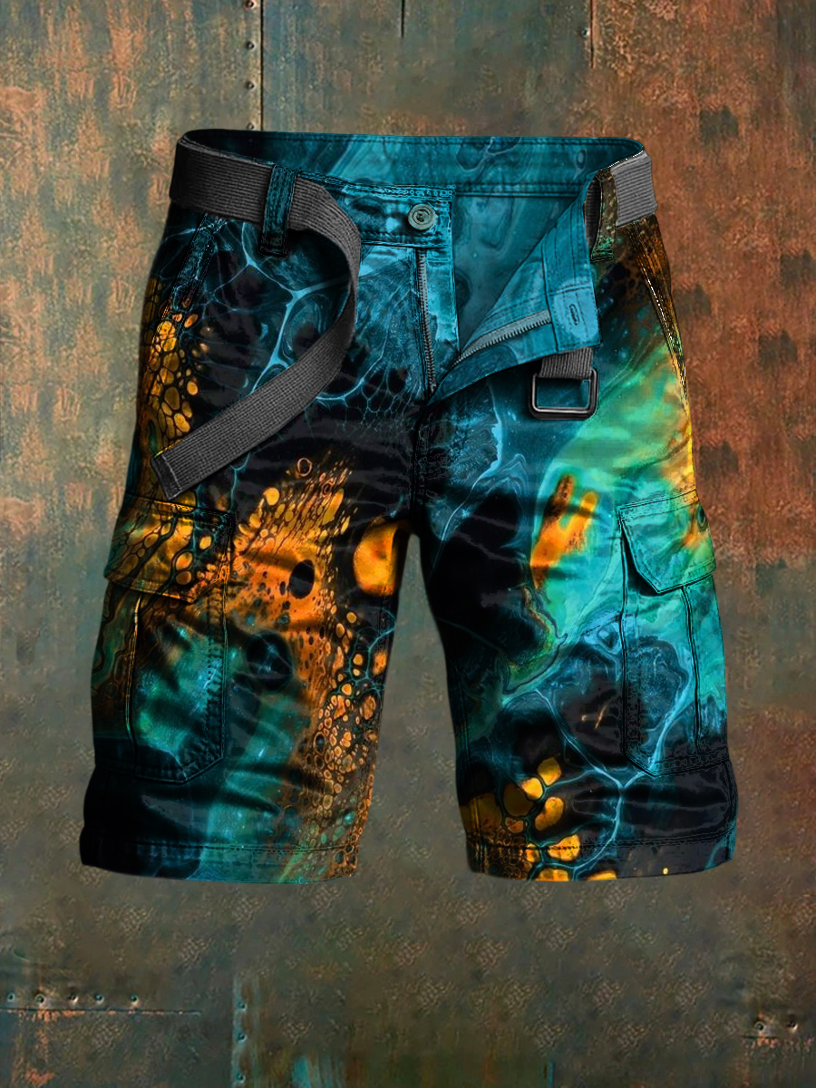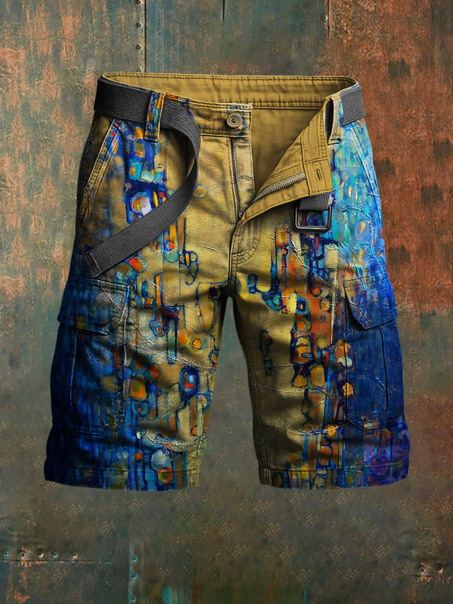 Men's Retro Vacation Business Art Print Casual Shorts