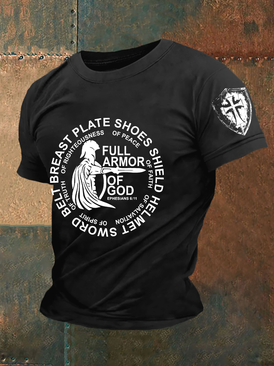 Men's Armor Of God Faith Cross Printed Casual Short Sleeve T-shirt