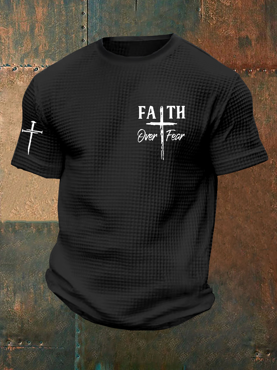 Men's Faith Over Fear Cross Printed O-Neck Short Sleeve T-Shirt