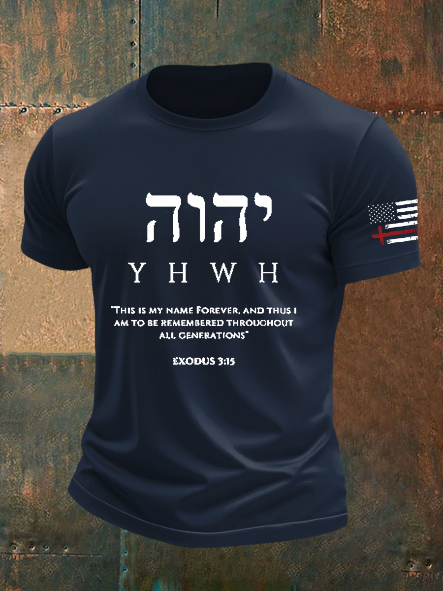 Men's Faith Yeshua Cross Flag Yahweh Exodus 3:15 Short Sleeve T-shirt