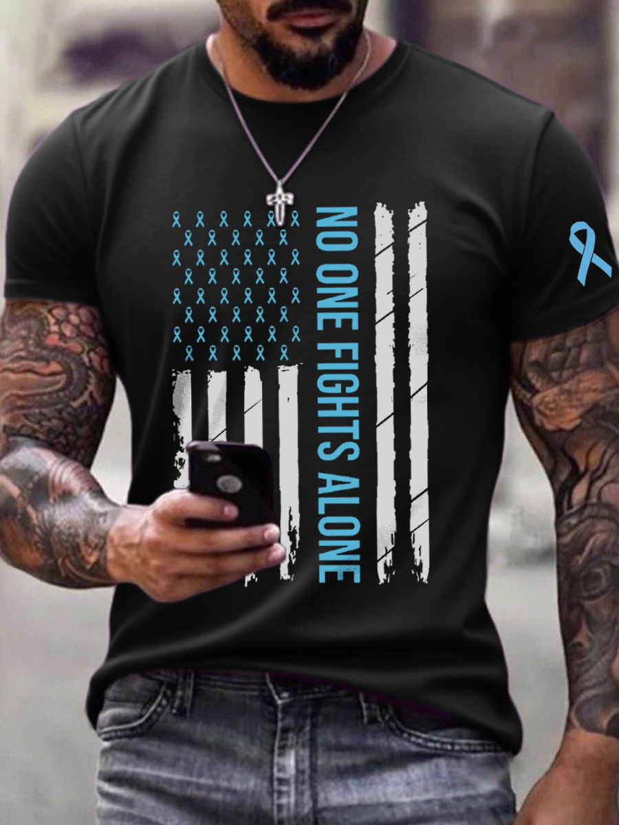 Men's Prostate Cancer Awareness No One Fights Alone Print T-Shirt