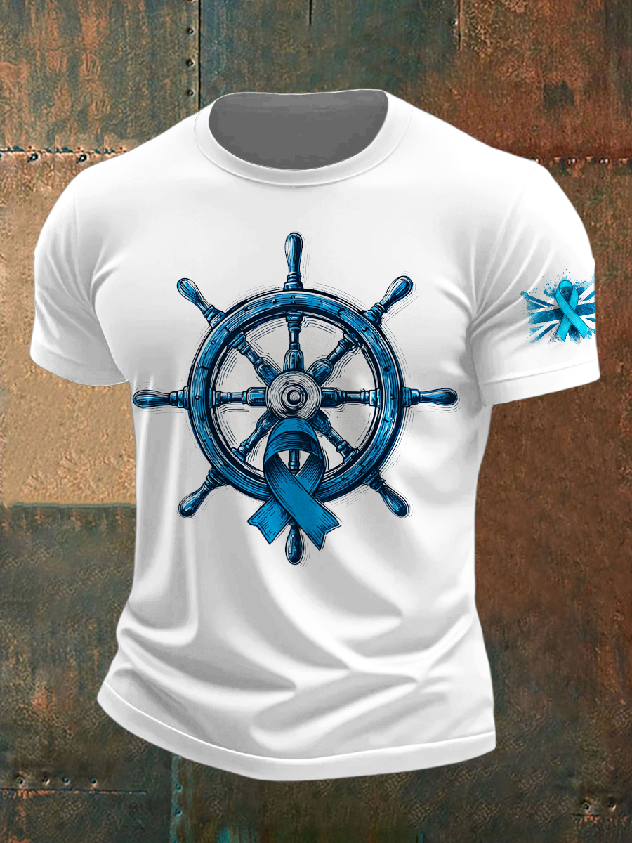 Men's Prostate Cancer UK Printed Vintage Fashion Loose Short Sleeve T-Shirt