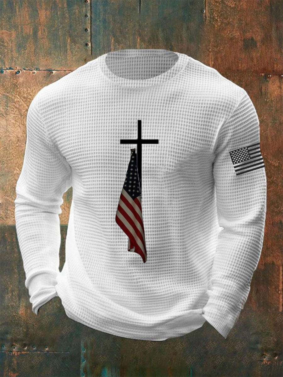 Men's Retro Flag Cross O-Neck Printed Long Sleeve T-Shirt