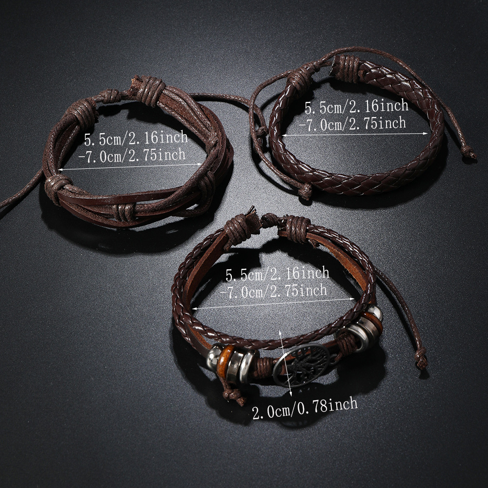 Men's Tree of Life Vintage Woven Personalized Leather Bracelet Three-Piece Set