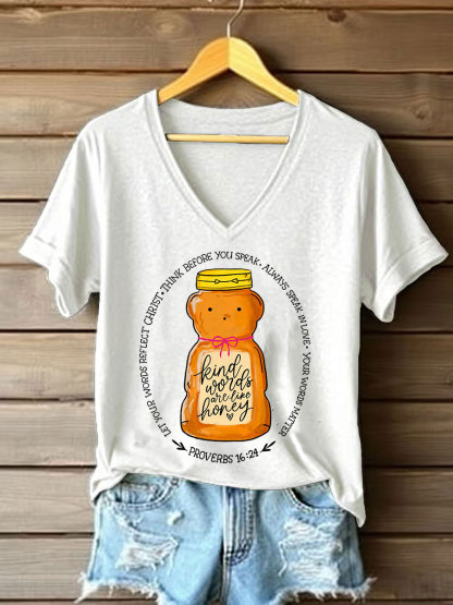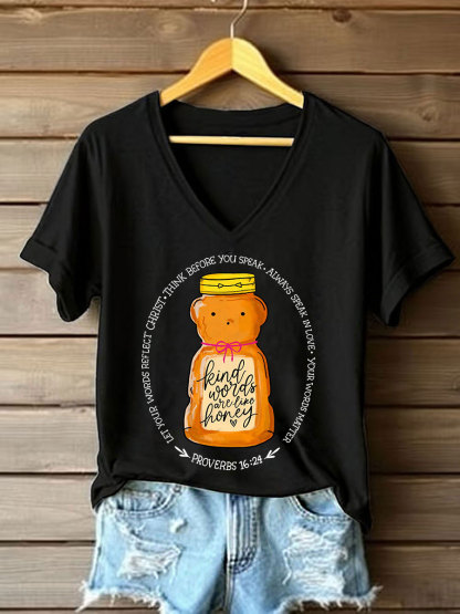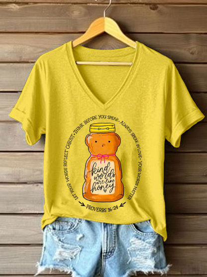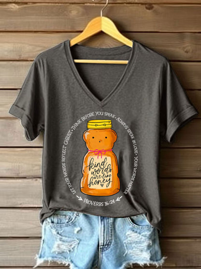 Women's 'Kind Words Are Like Honey' Printed Casual T-Shirt