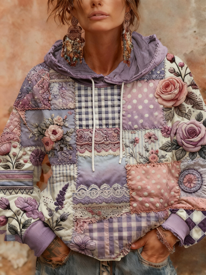 Women's Alzheimer's Awareness Purple Floral Patchwork Hooded