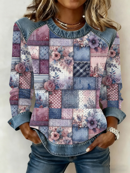 Women's Alzheimer's Awareness Purple Floral Patchwork Hooded